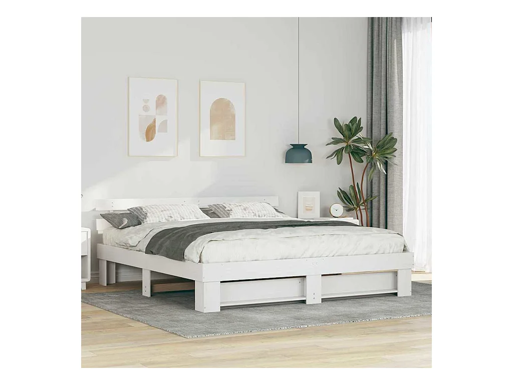 Struttura letto bianca 180 x 200 cm Legno massello di pino