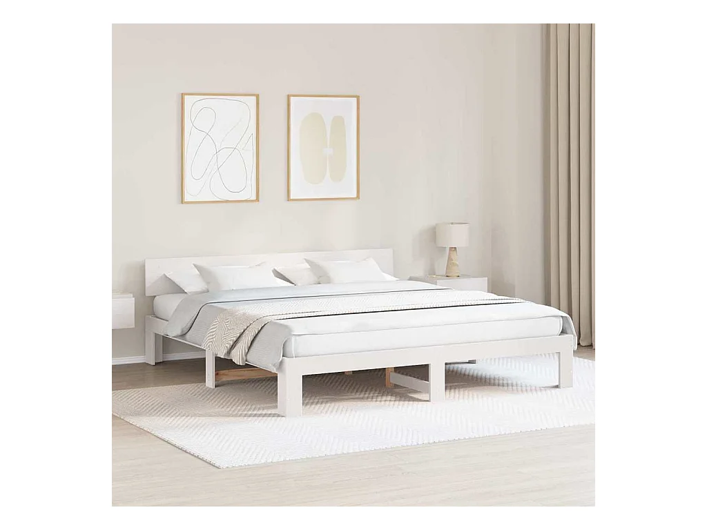 Struttura letto bianca 180 x 220 cm Legno massello di pino
