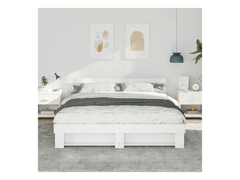 Struttura letto bianca 200 x 200 cm in legno massello di pino