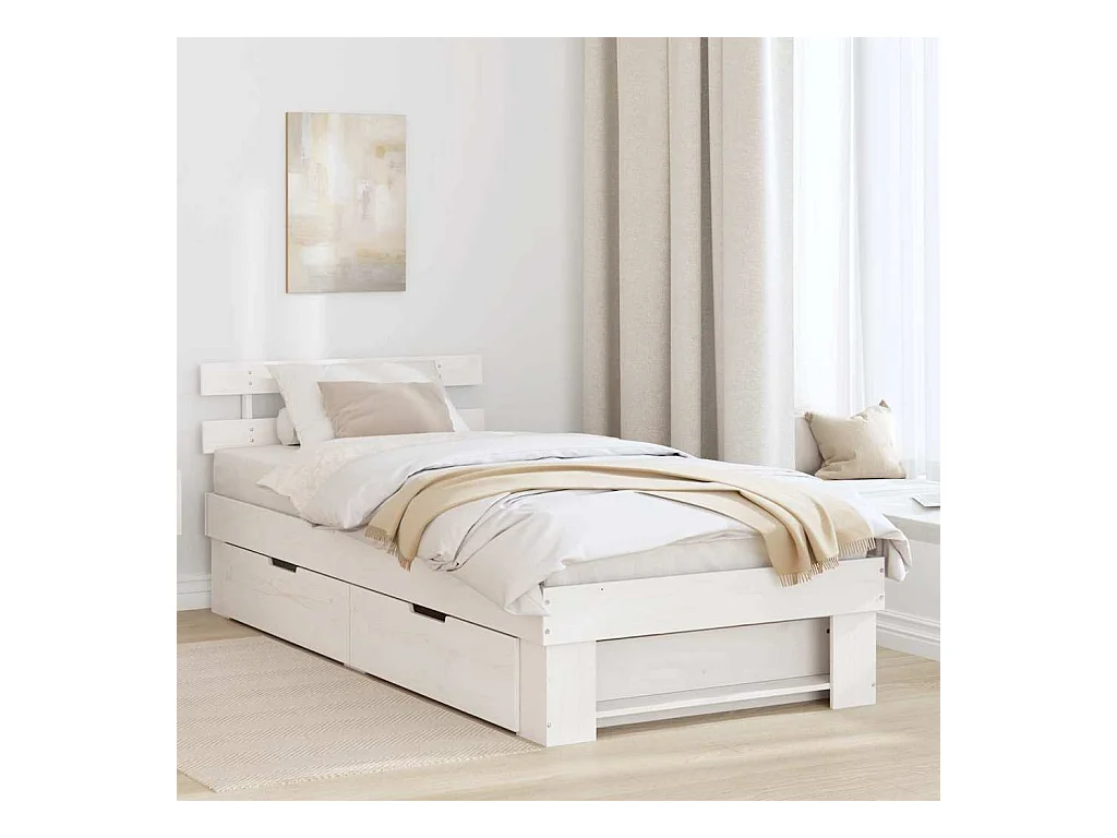 Struttura letto con cassetto Bianco 75 x 190 cm Legno massello di pino