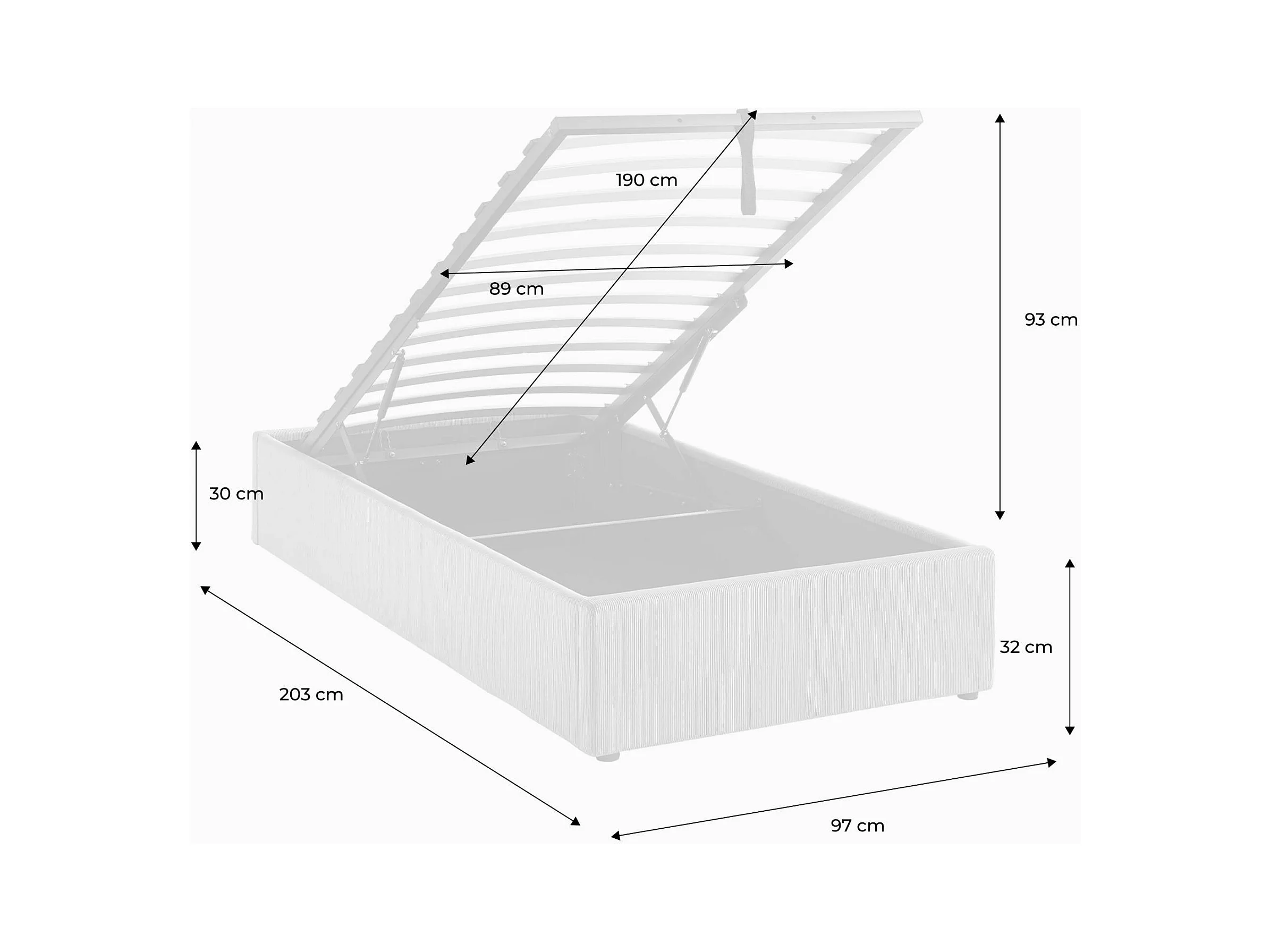 struttura letto con contenitore e rete a doghe 90cm, imbottita coste
