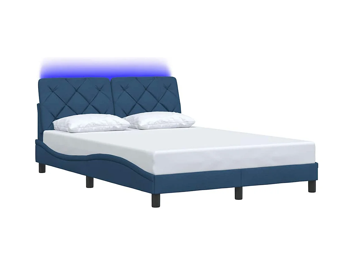 Struttura letto con LED senza materasso tessuto blu 140x190 cm