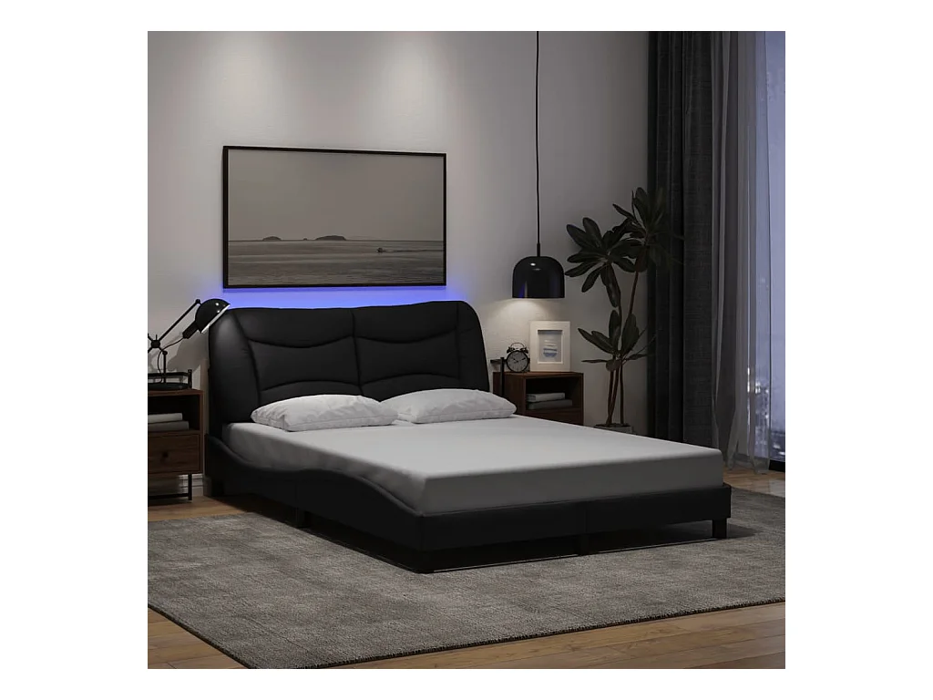 Struttura letto con LED senza materasso tessuto nero 120x200 cm
