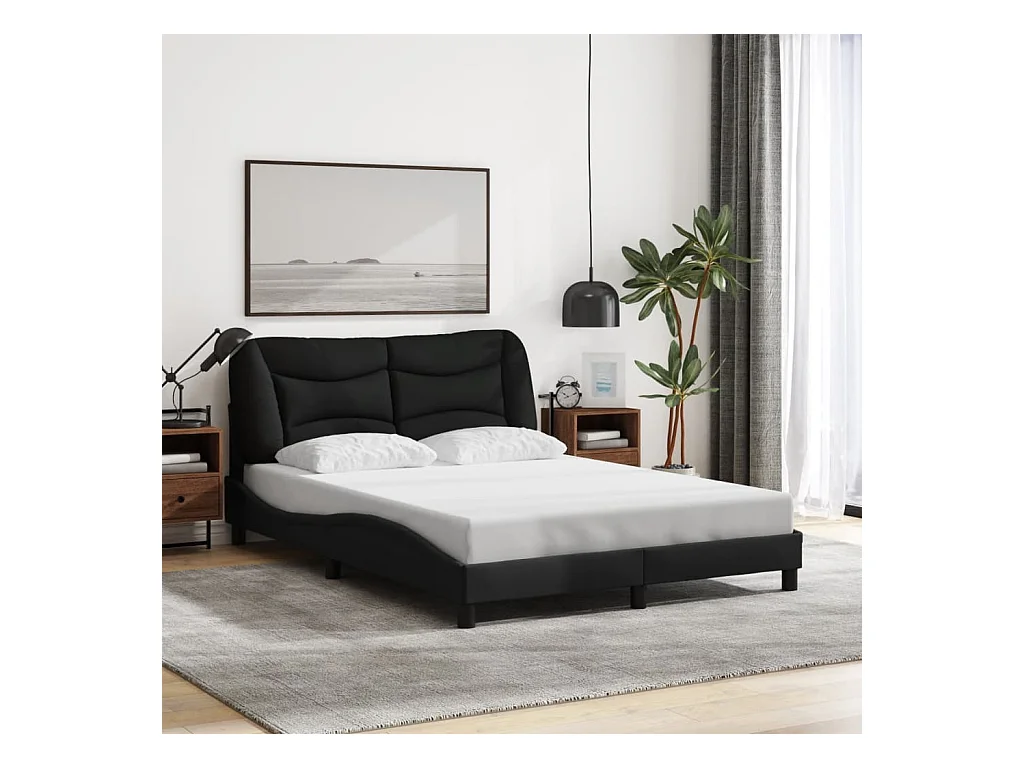 Struttura letto con LED senza materasso tessuto nero 140x190 cm