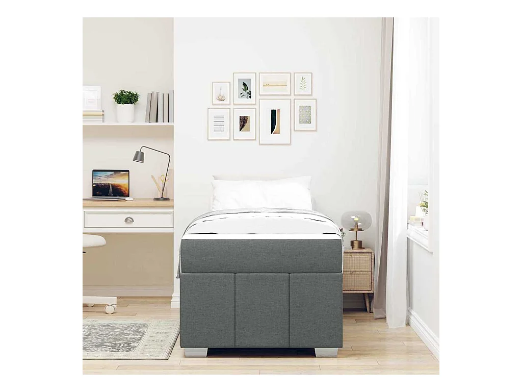 Struttura letto con materasso Tessuto grigio scuro 120 x 190 cm