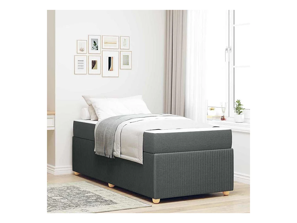 Struttura letto con materasso Tessuto grigio scuro 80 x 200 cm