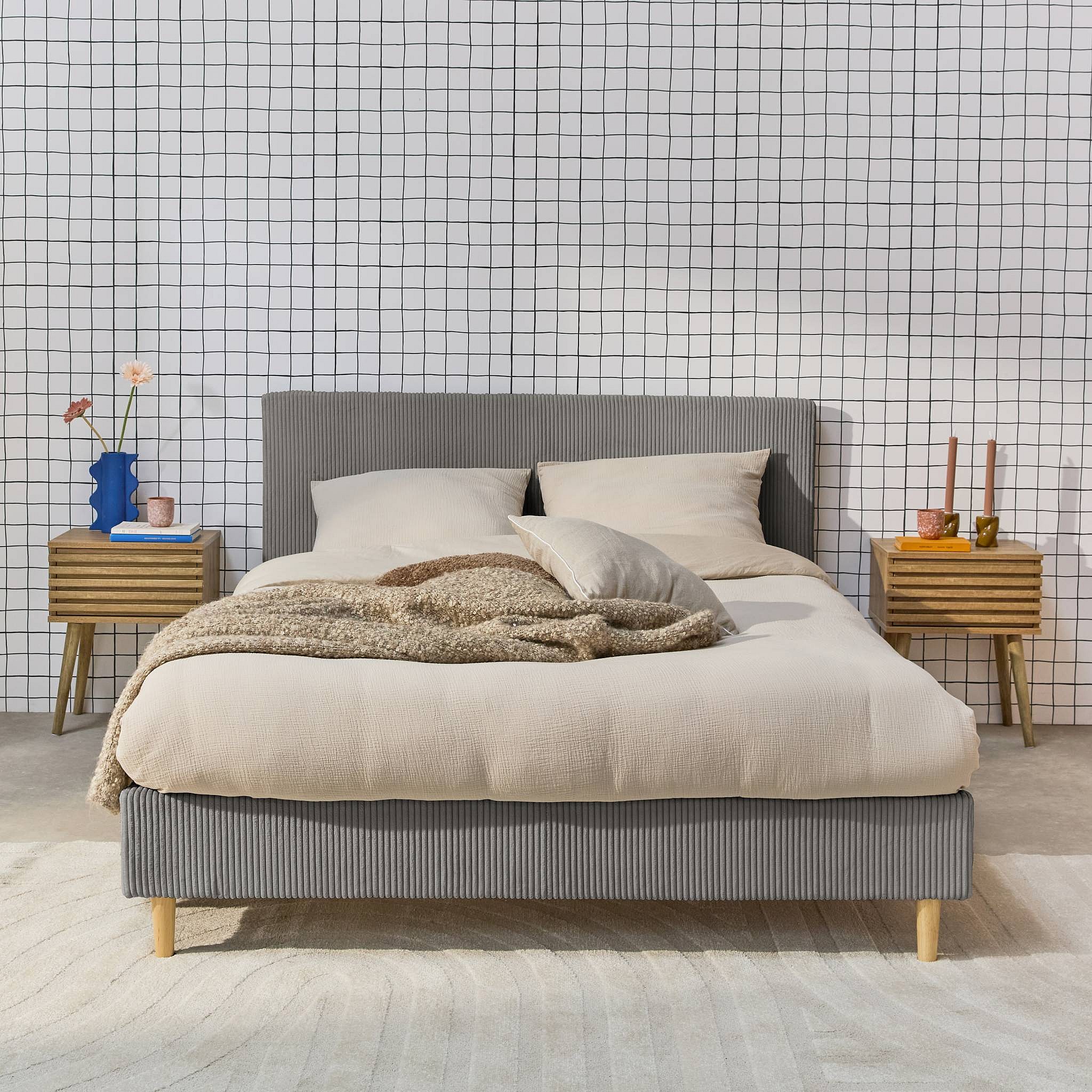 Struttura letto con rete a doghe e testiera 140cm, velluto a coste