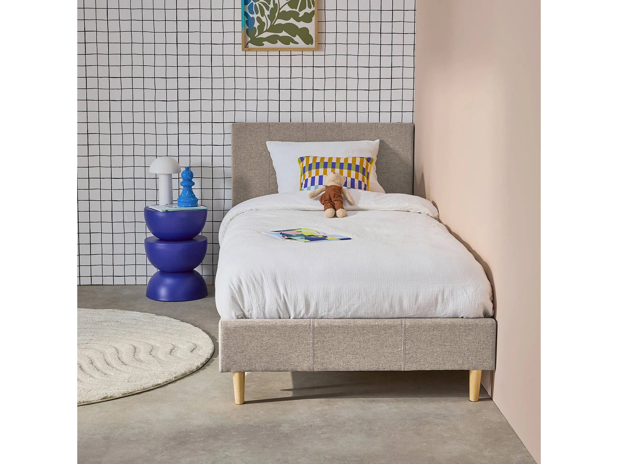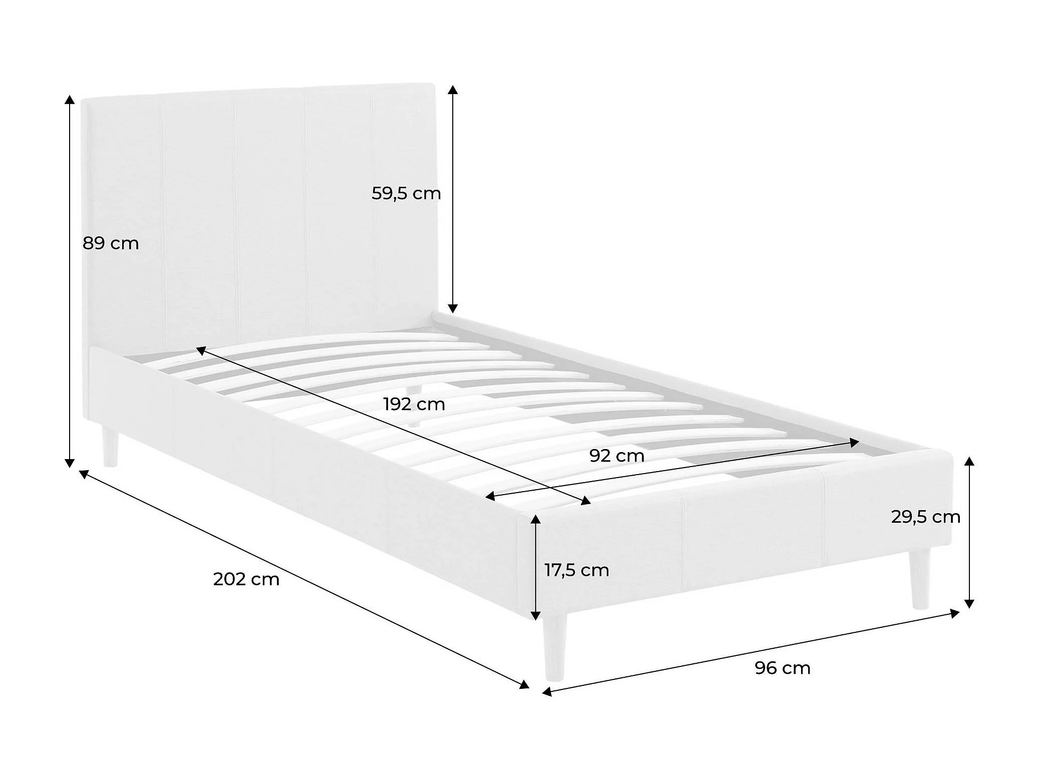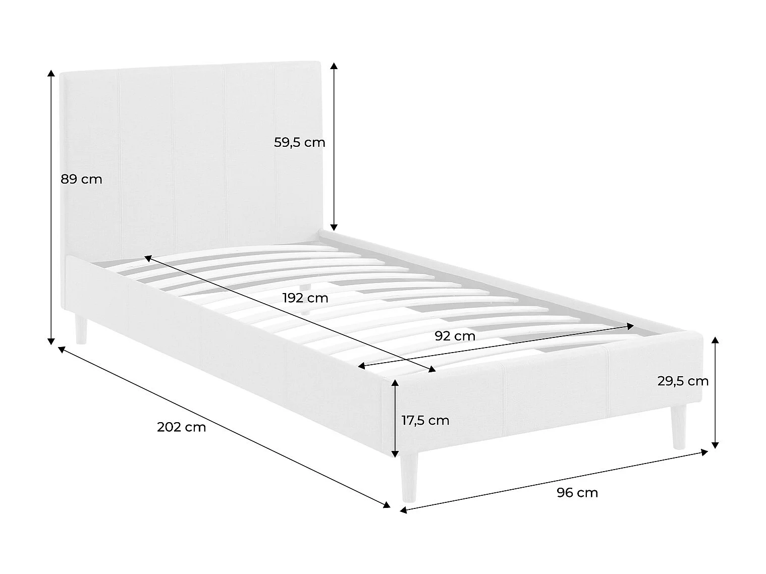 Struttura letto con rete a doghe e testiera 90cm, tessuto semplice,