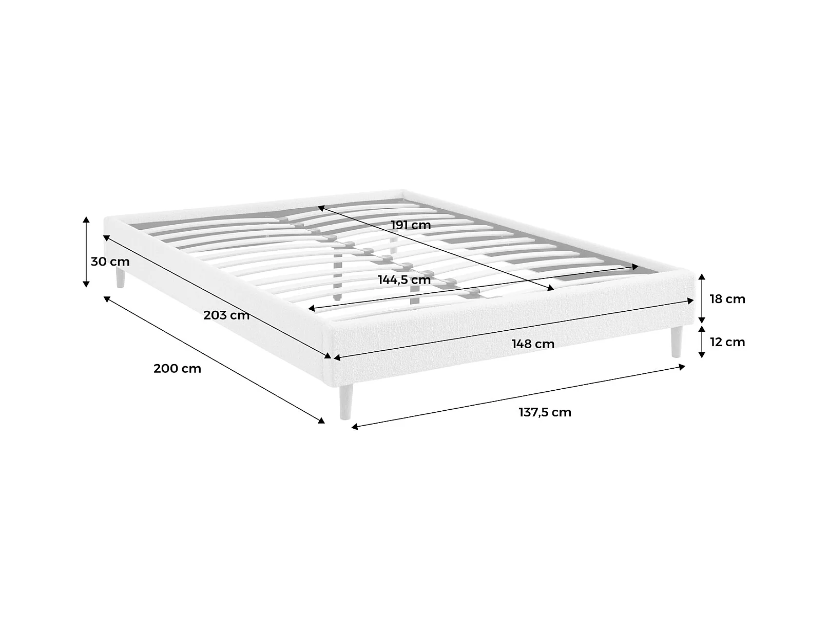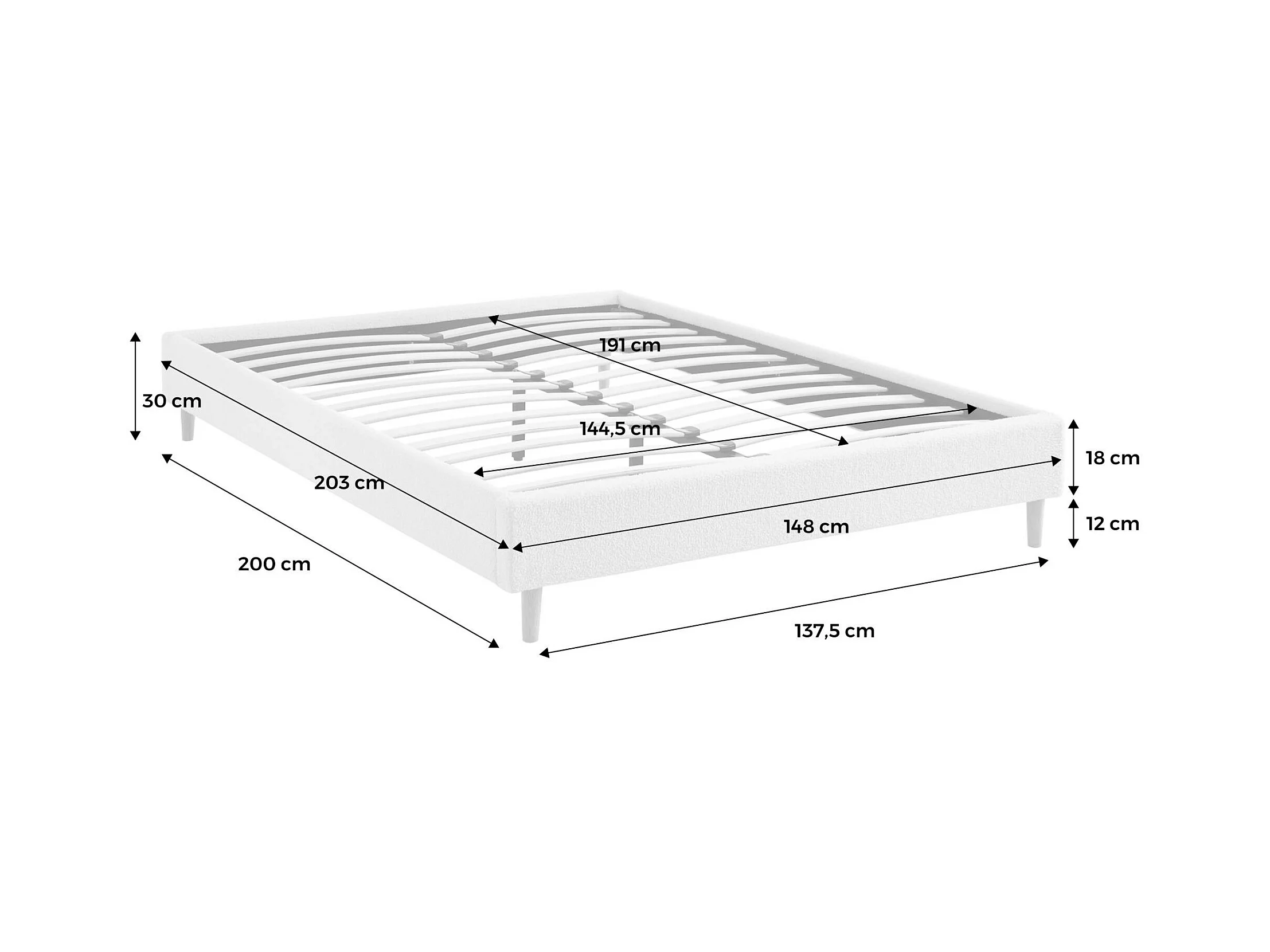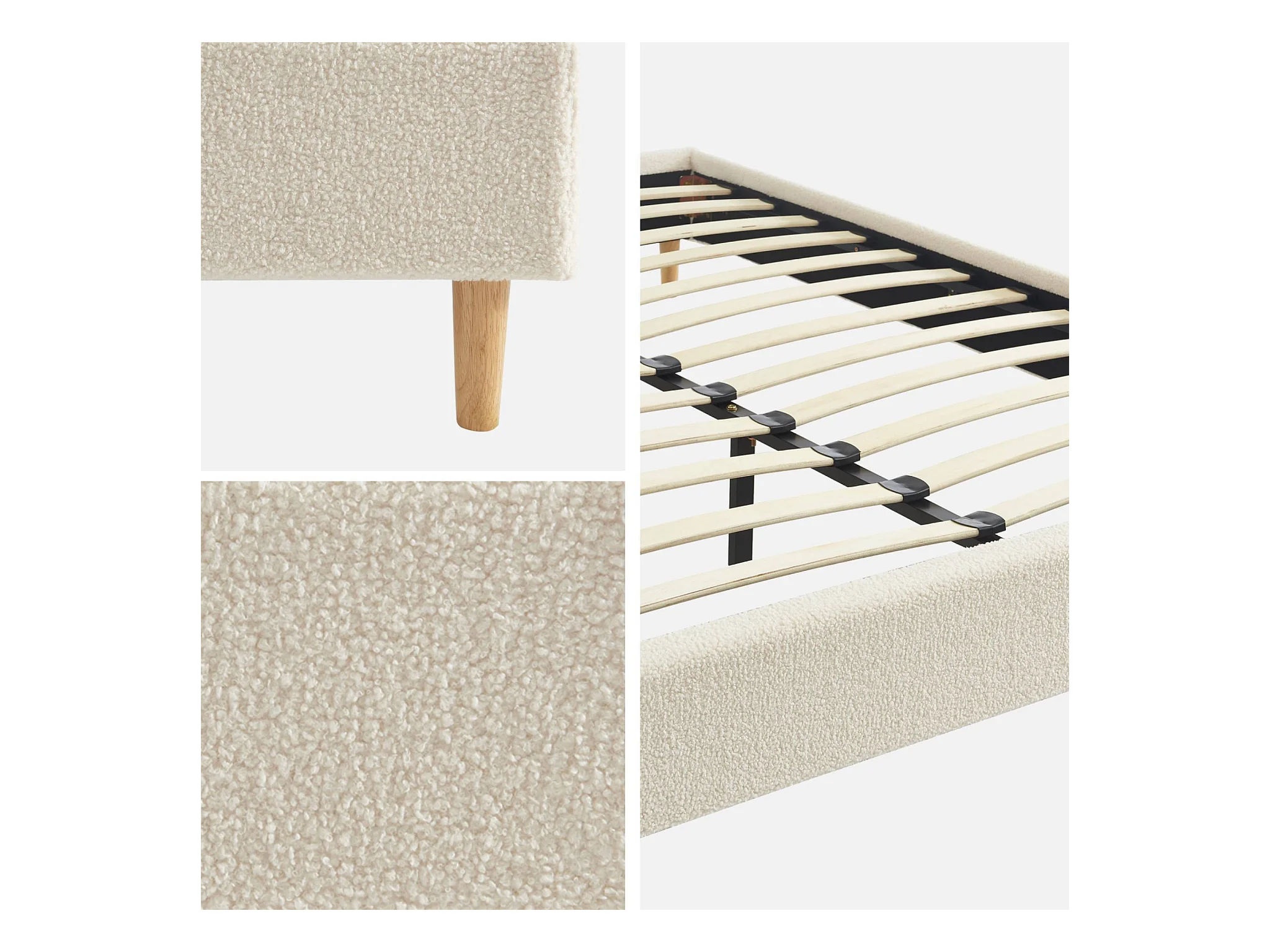 Struttura letto con rete a doghe, finitura bouclé, bianco, bianco