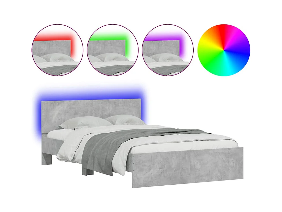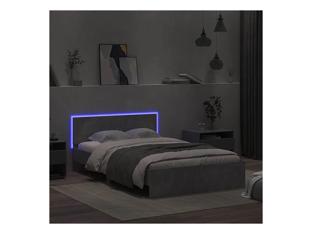 Struttura letto con testiera e LED grigio cemento 140x190 cm