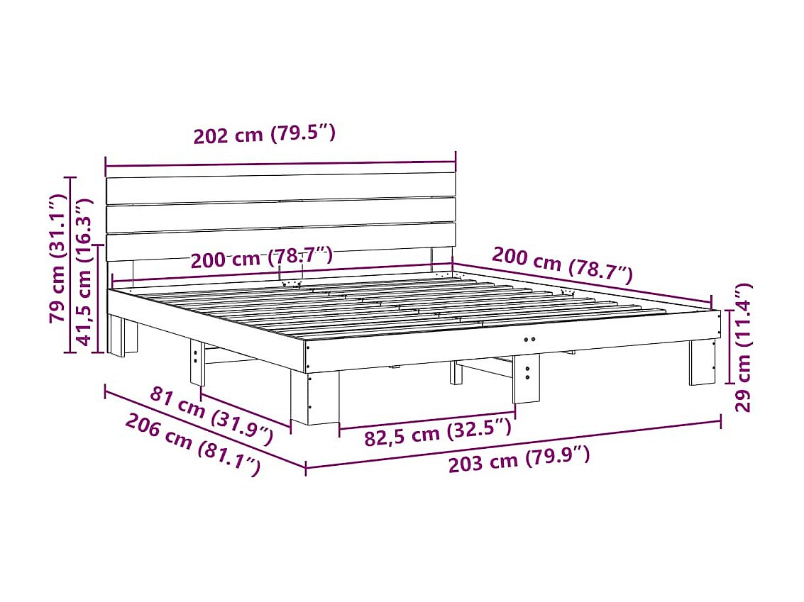 Struttura Letto con Testiera senza Materasso 200x200 cm