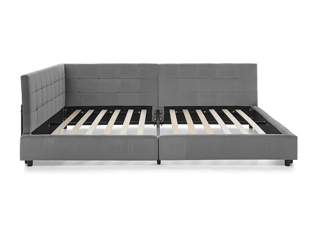 Letto matrimoniale 140x200 cm - Testiera imbottita e base in legno - Velluto grigio (senza materasso)