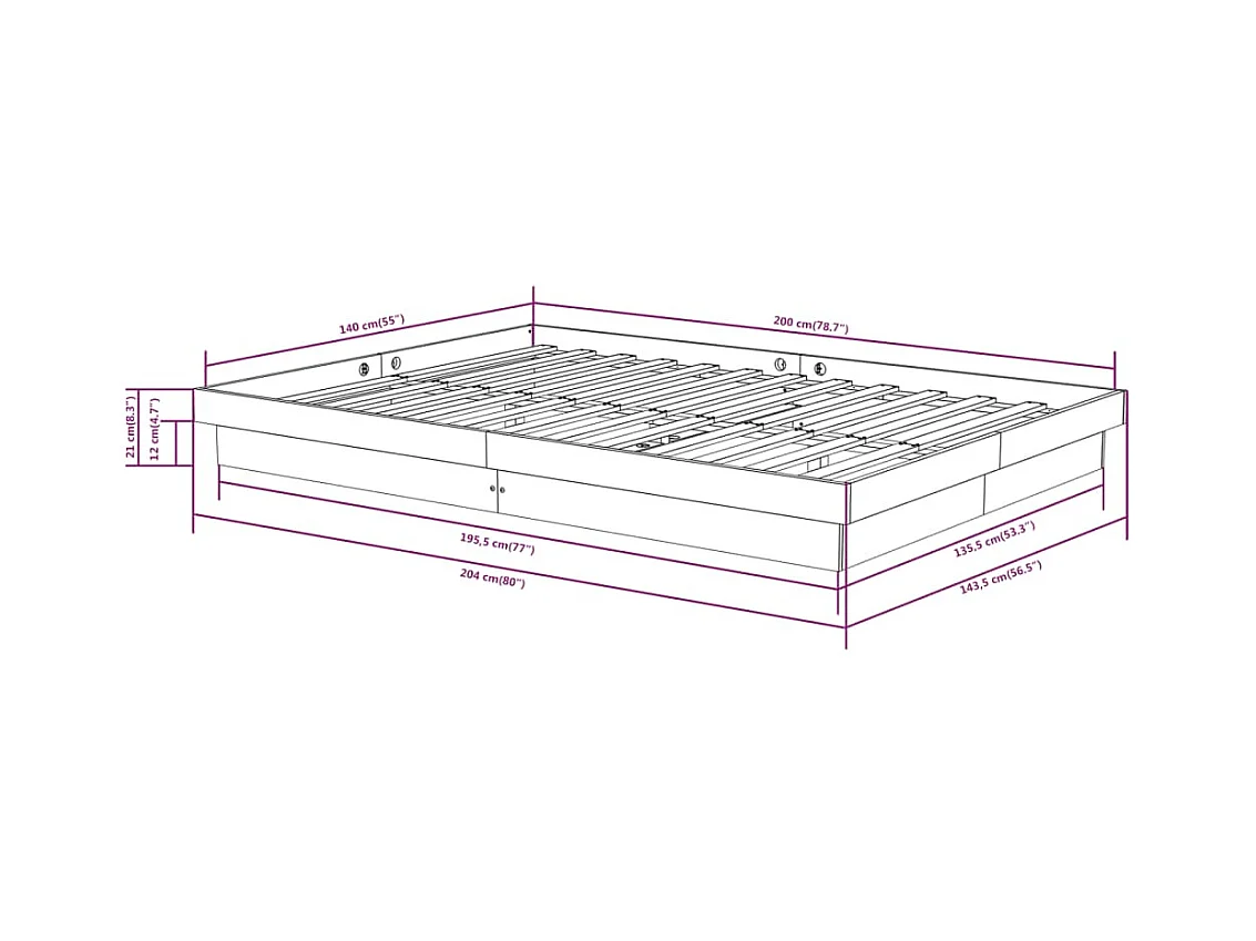 Struttura letto senza materasso 140x200 cm in legno massello