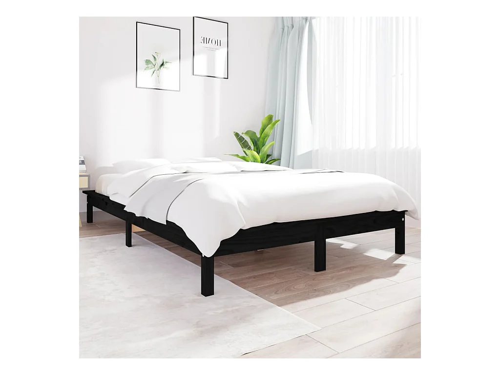 Struttura letto in legno massello nero senza materasso
