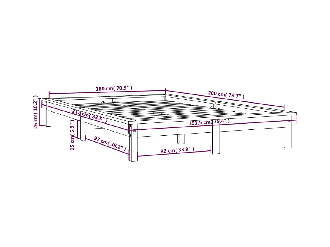 Struttura letto senza materasso nero 180x200 cm in legno massello