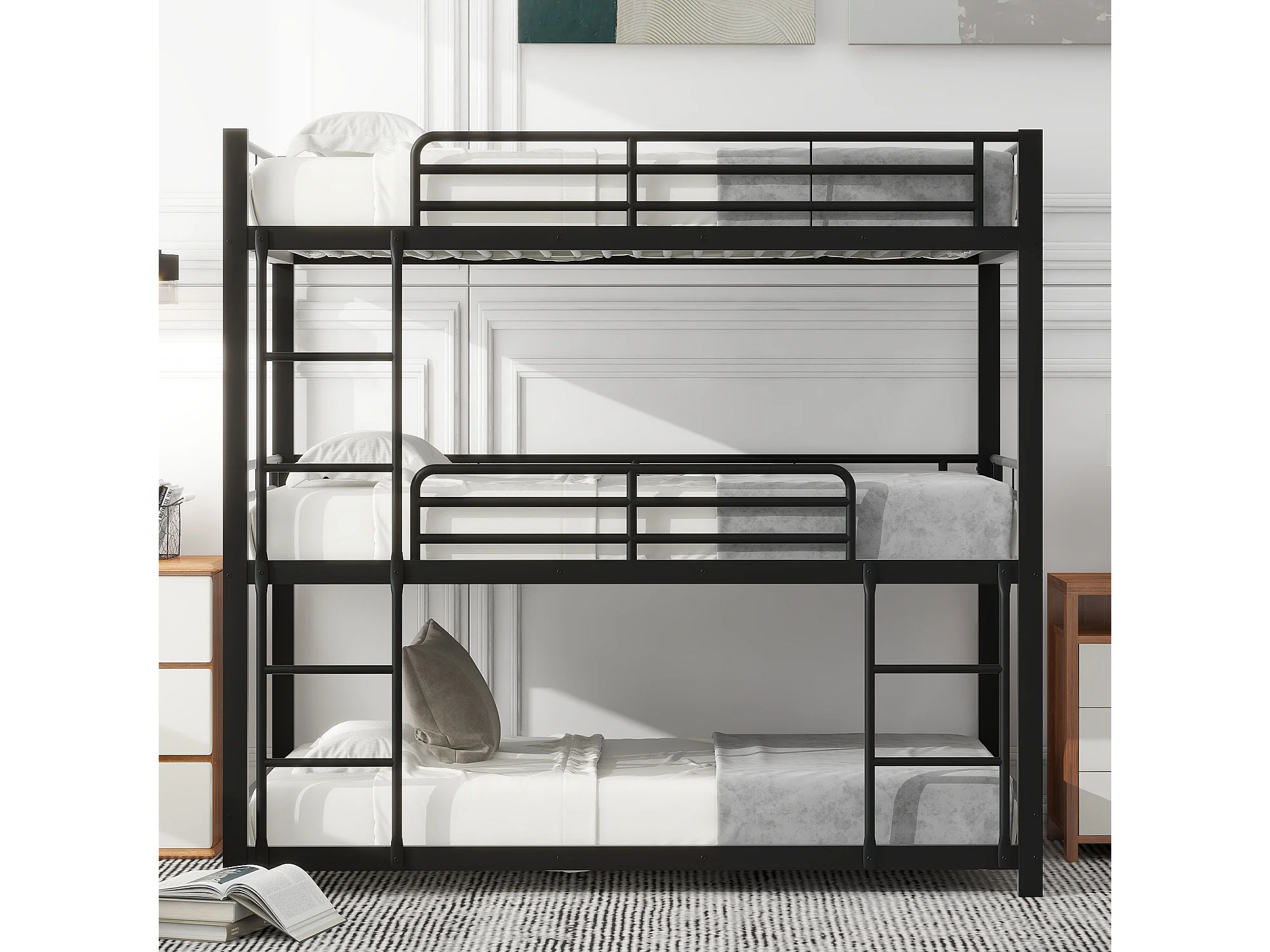 Struttura letto in metallo 90x200cm con letti a castello per bambini, adolescenti e adulti, nero