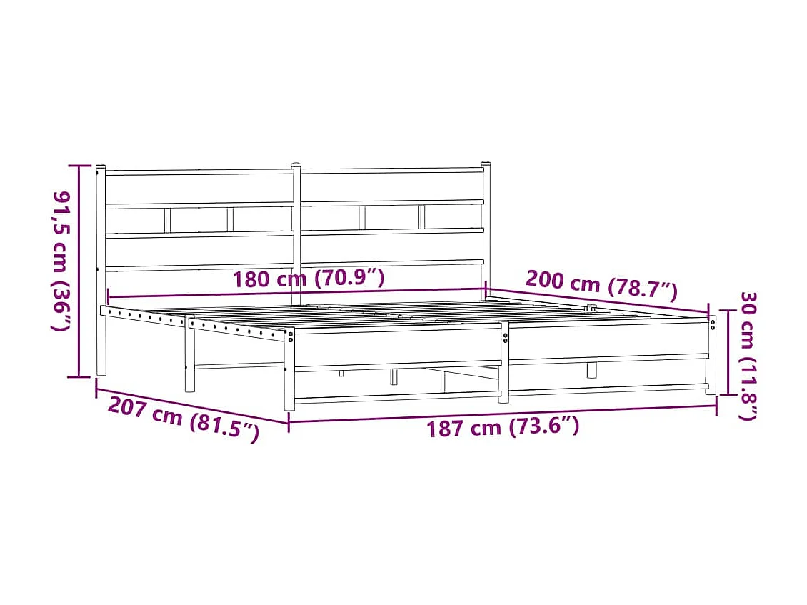 Struttura letto in metallo senza materasso rovere marrone 180x200 cm
