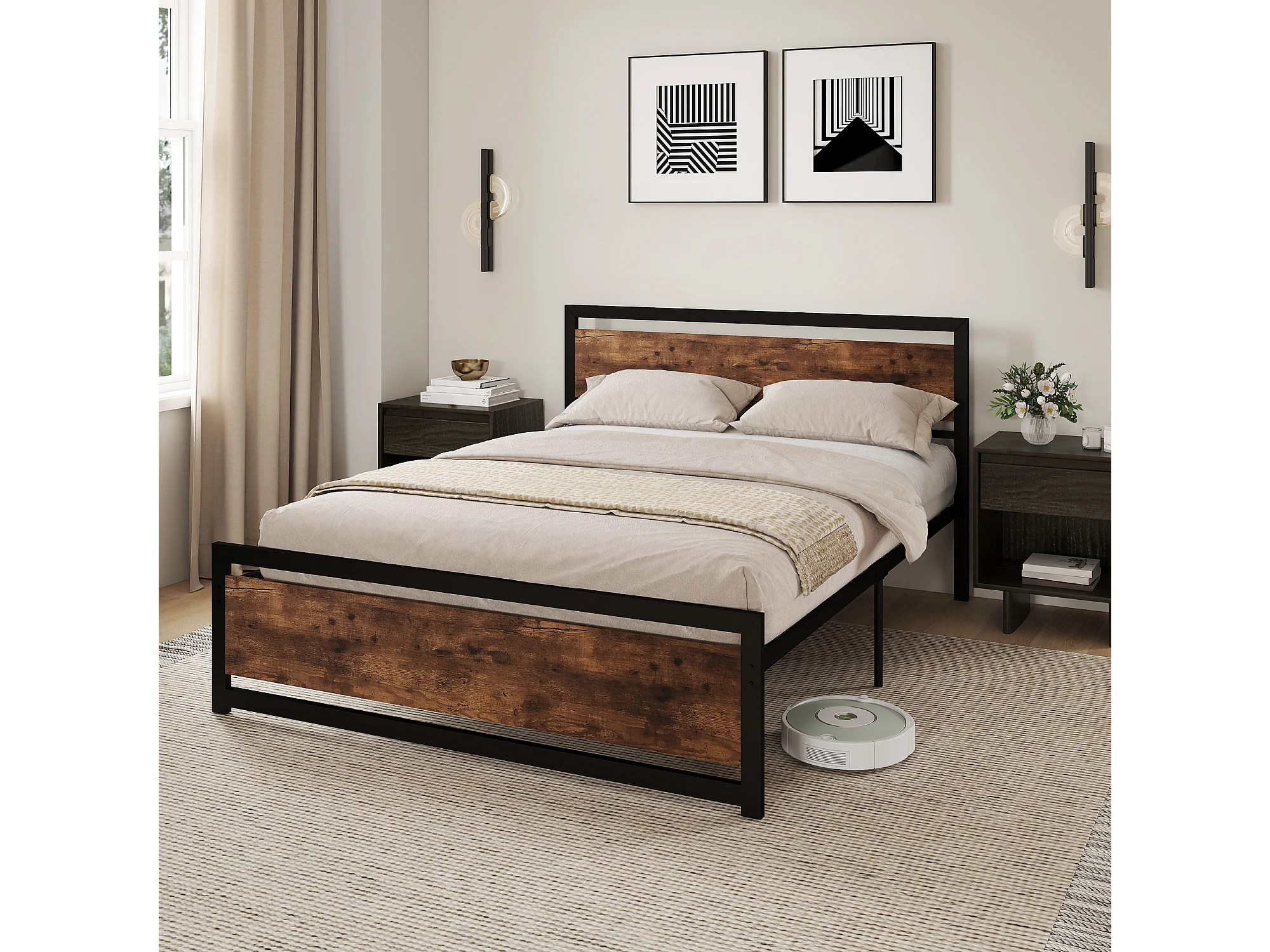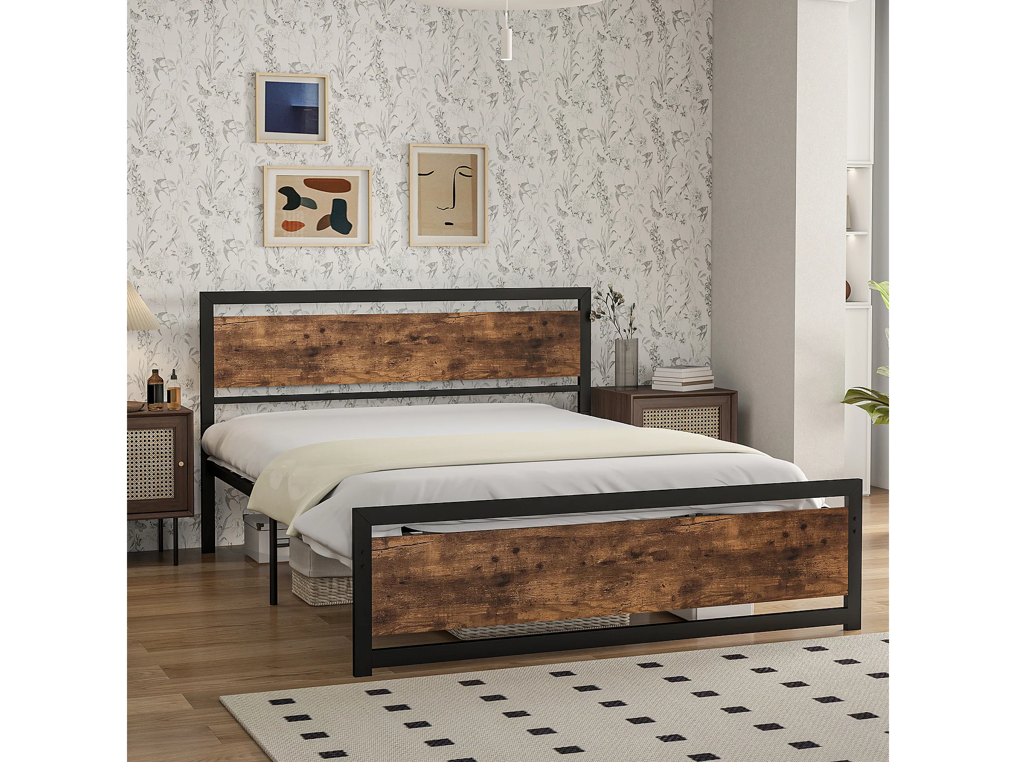 Struttura letto matrimoniale 160x200cm acciaio legno con doghe