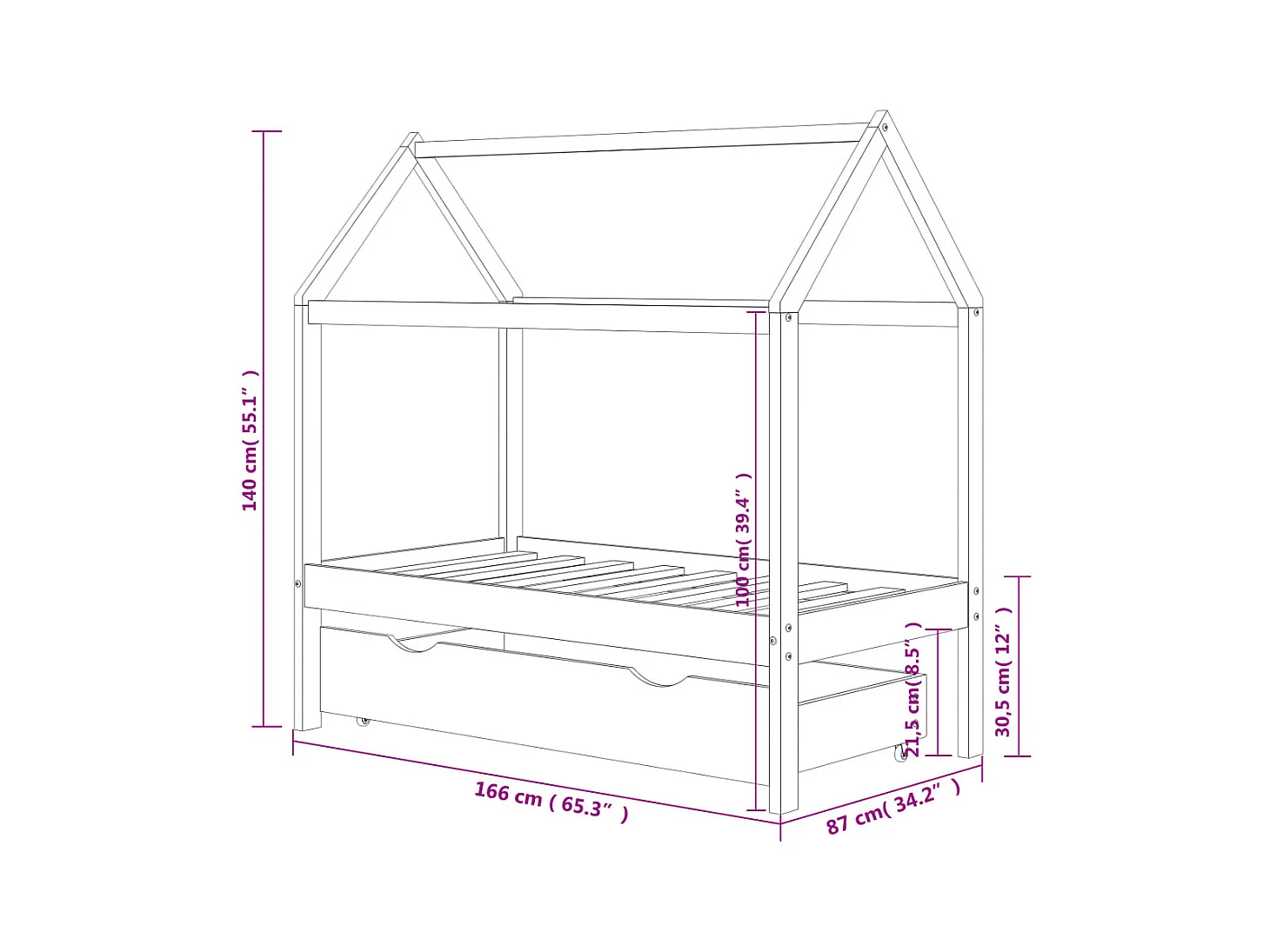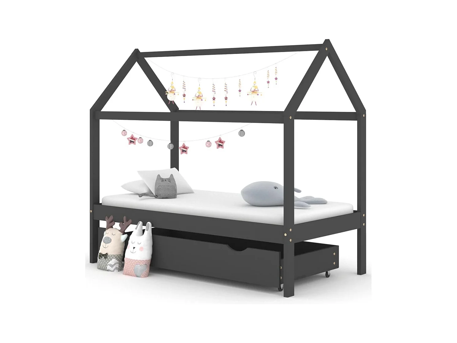 Struttura letto per bambini con un cassetto Pino grigio scuro 80x160 cm