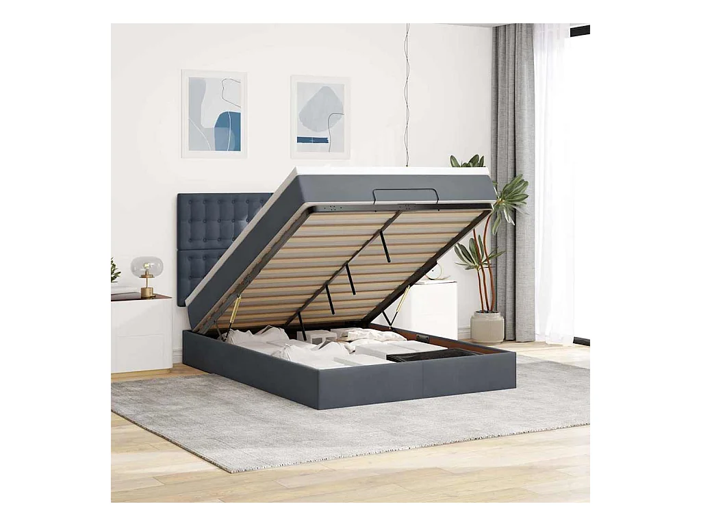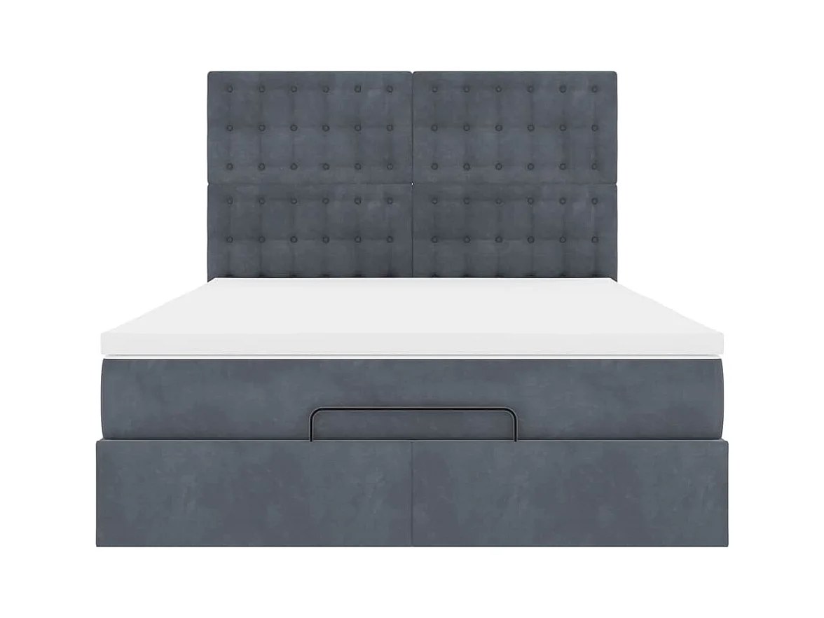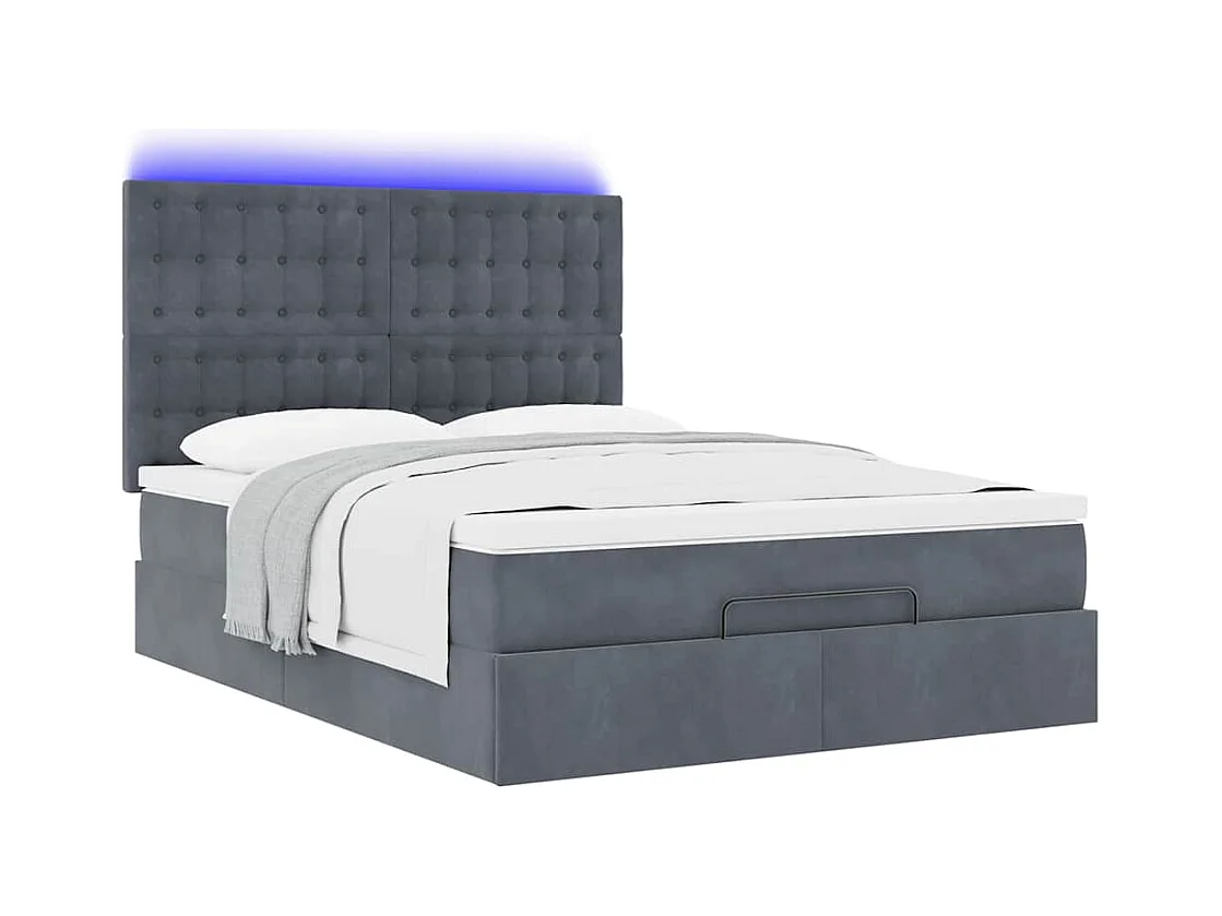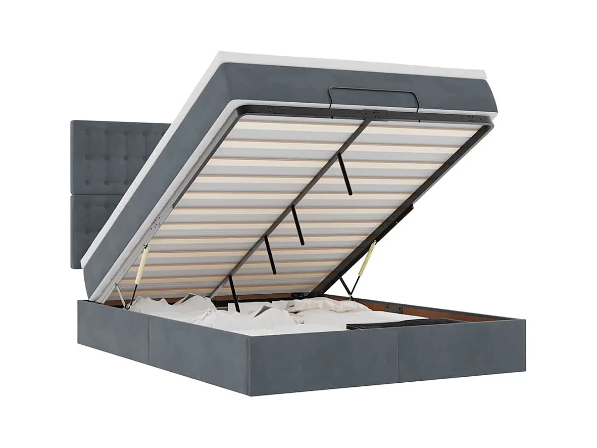Letto in velluto con ali, bottoni decorativi, idraulico con contenitore, 140x200 cm, grigio (207x146x99 cm)
