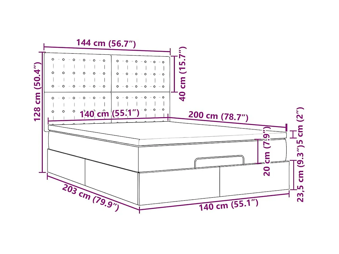Struttura Letto Pouf con Materassi 140x200 cm in Velluto