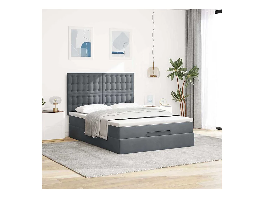 Lit double 140x200 grigio in velluto con cassetto idraulico, cassetti e tête de lit