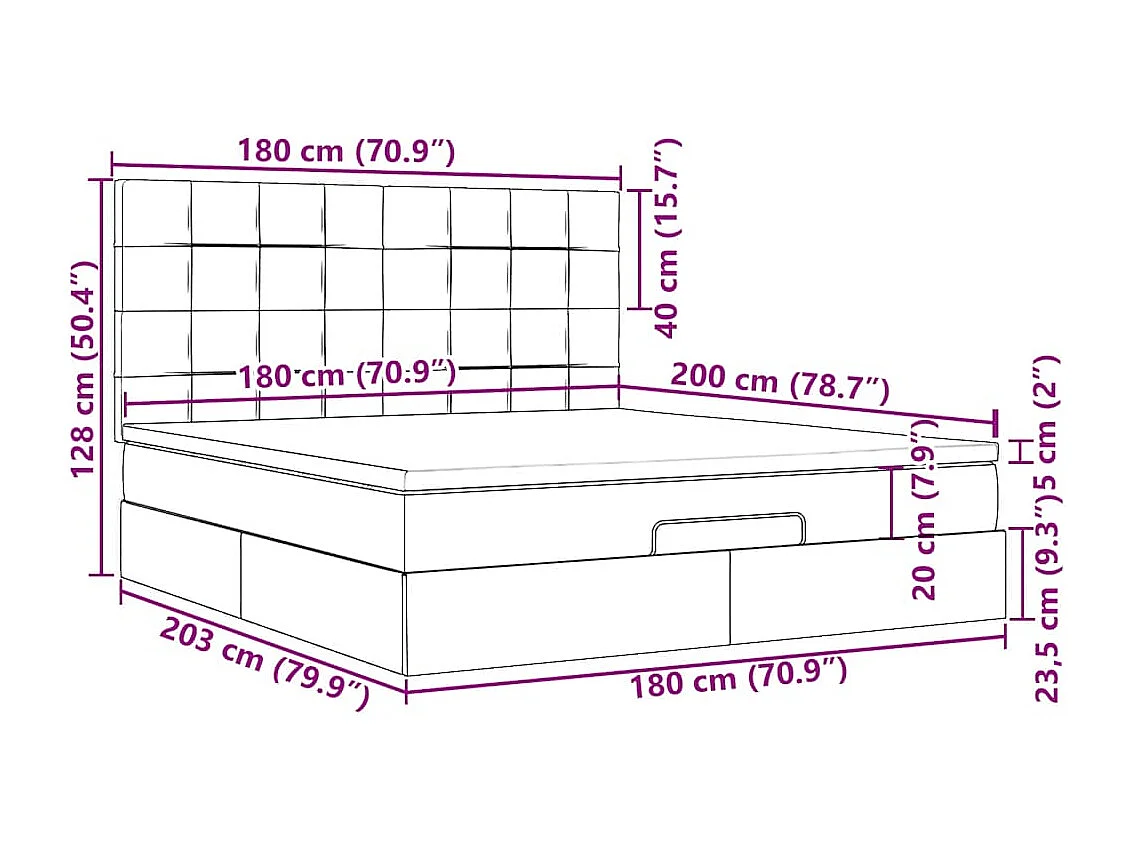 Struttura Letto Pouf con Materassi 180x200 cm Velluto