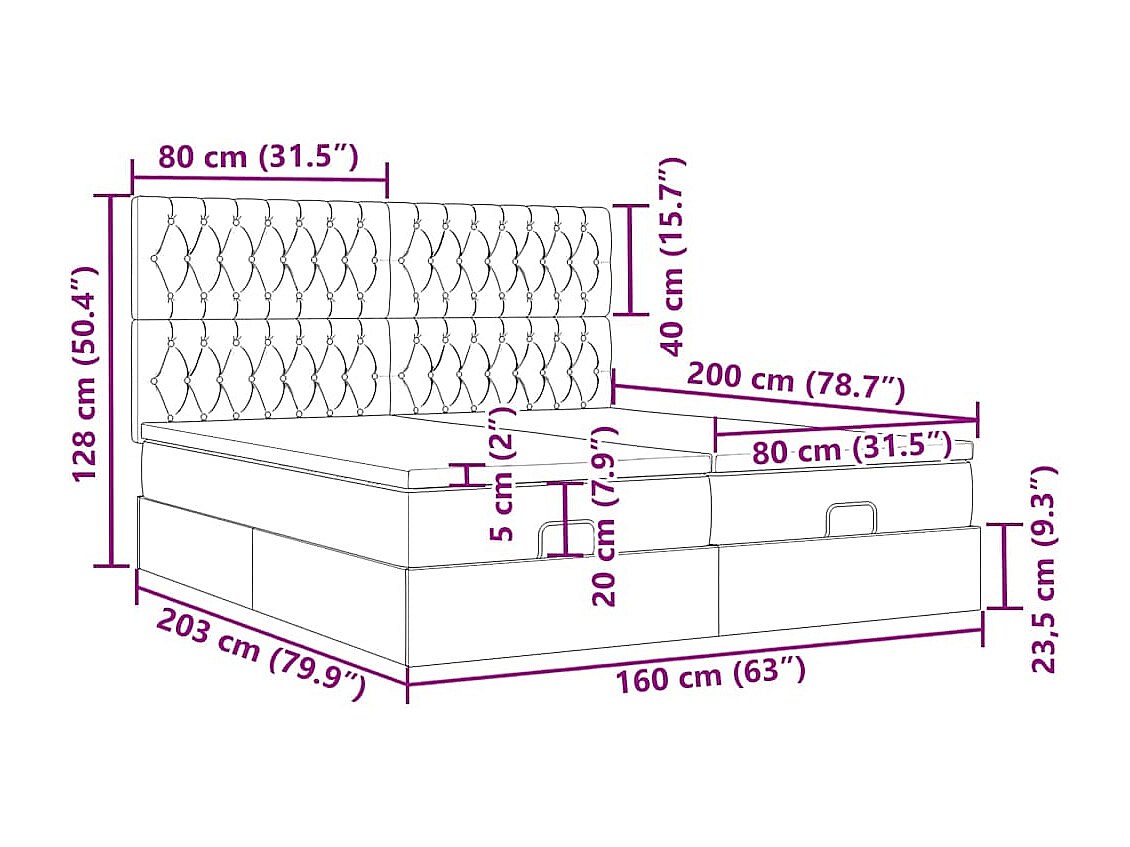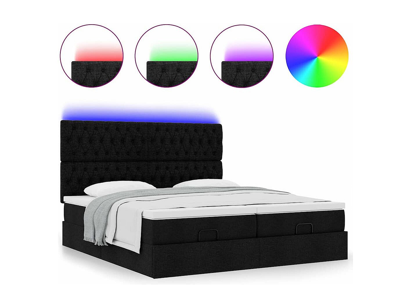 Struttura Letto Pouf con Materassi Nero 160x200 cm in Tessuto