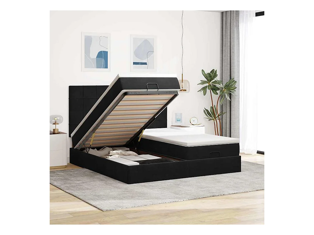 Struttura Letto Pouf con Materassi Nero 200x200 cm Similpelle