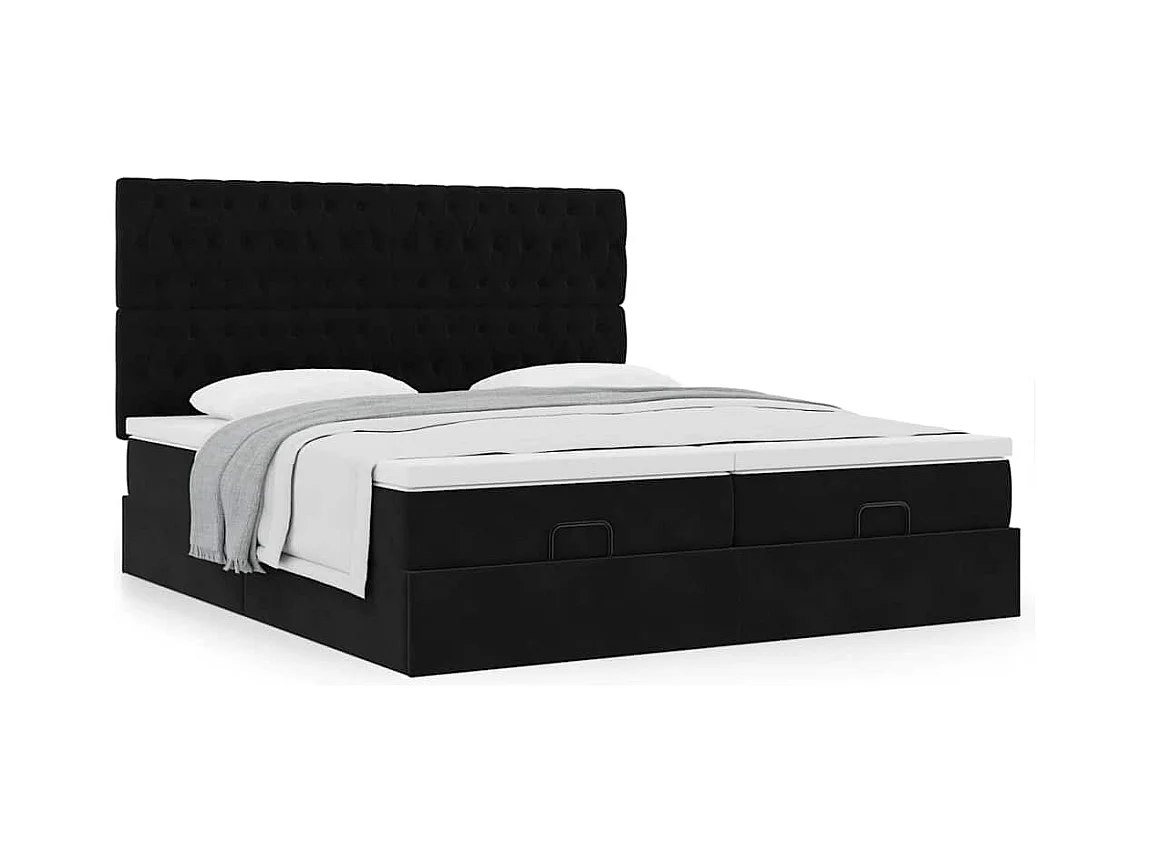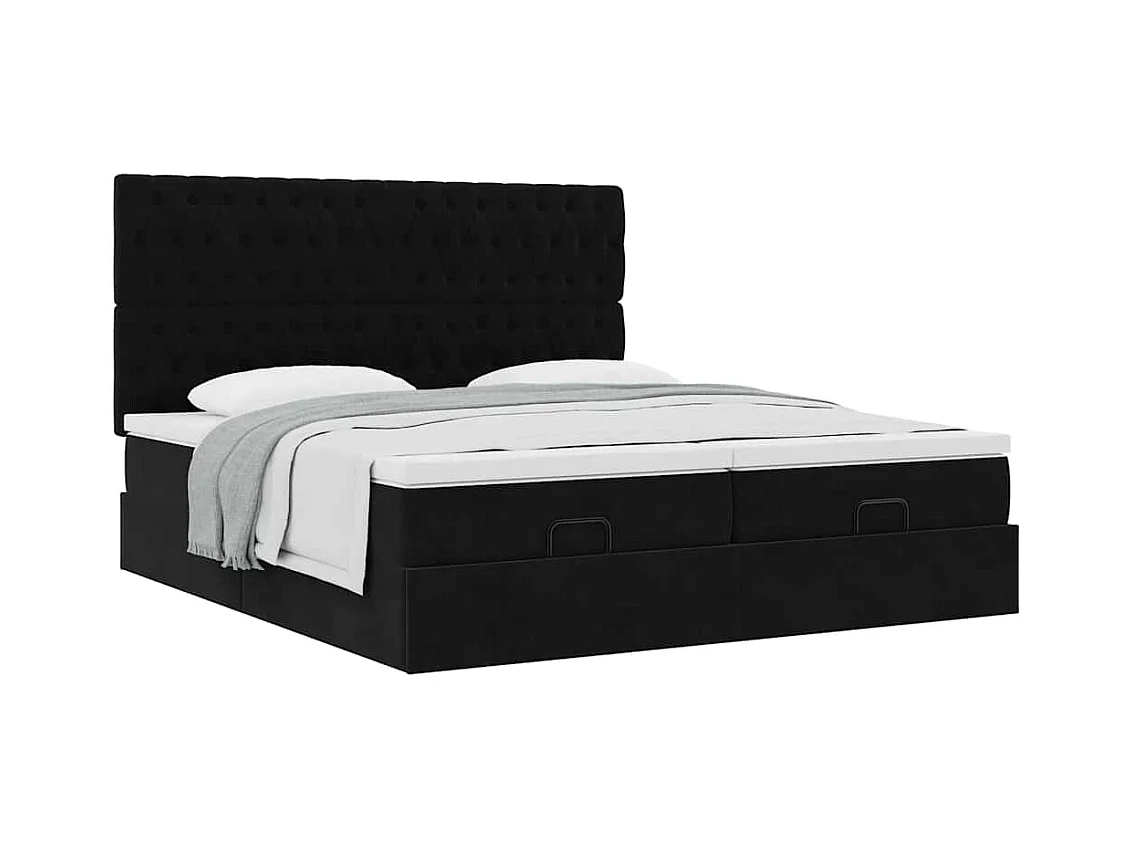 Struttura Letto Pouf con Materassi Nero 200x200 cm Velluto