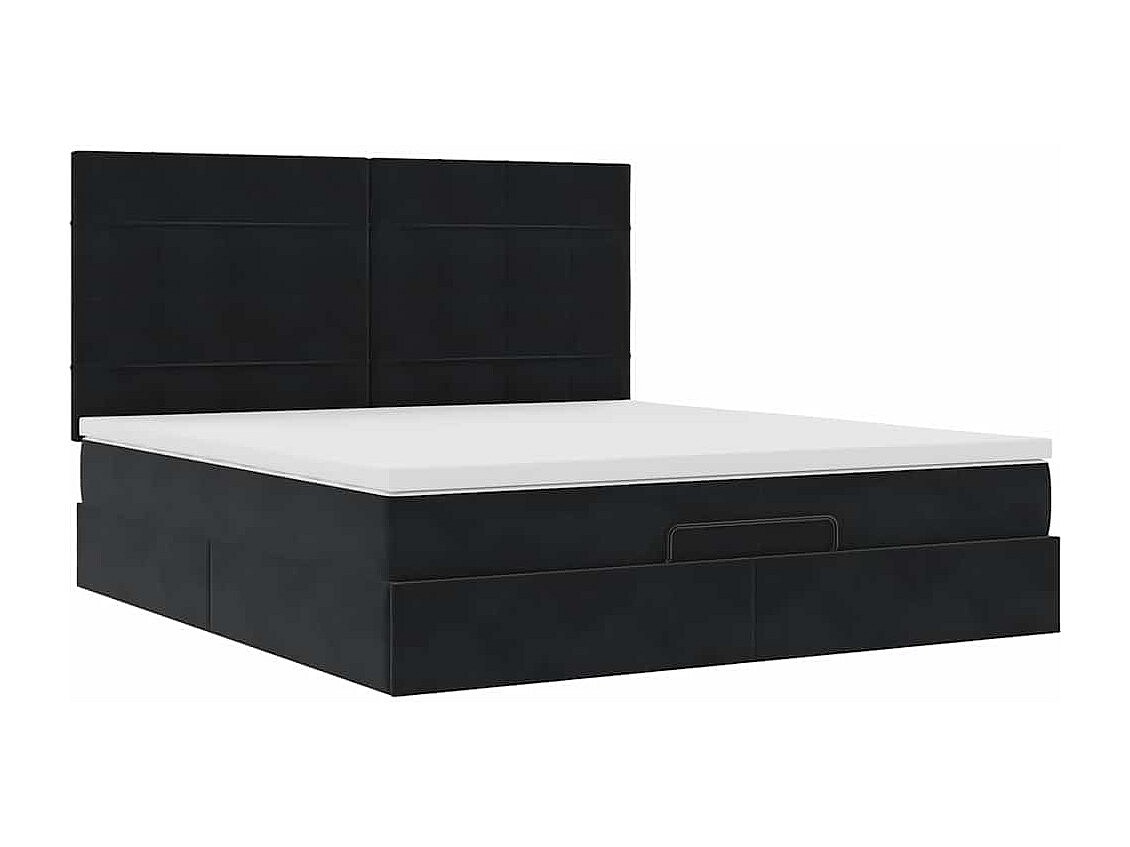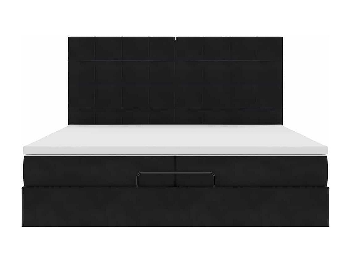 Struttura Letto Pouf con Materasso Nero 200x200 cm in Velluto