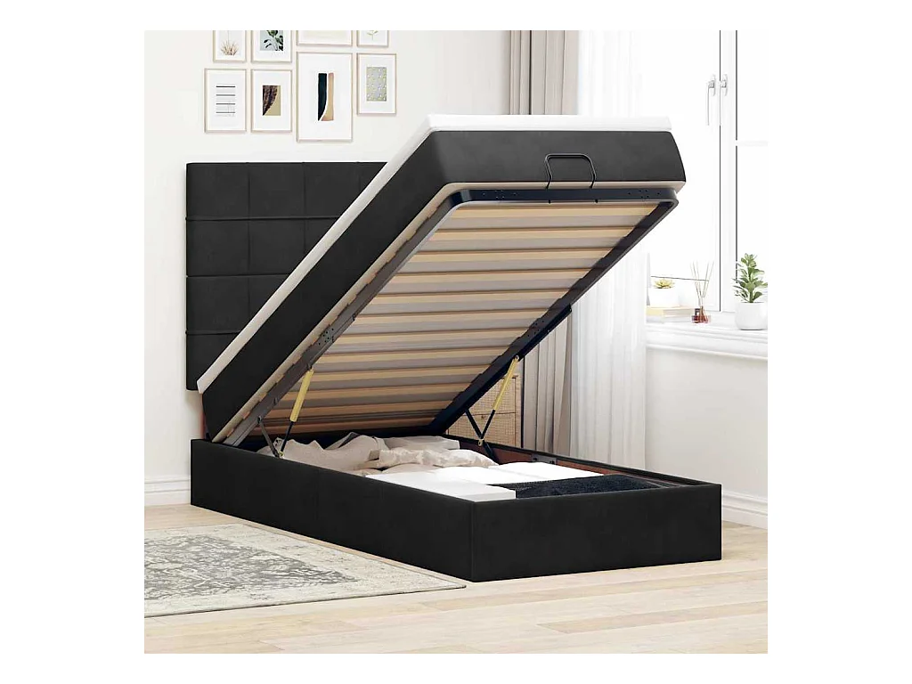 Giroletto a Molle con Materasso Nero 90x200 cm in Velluto