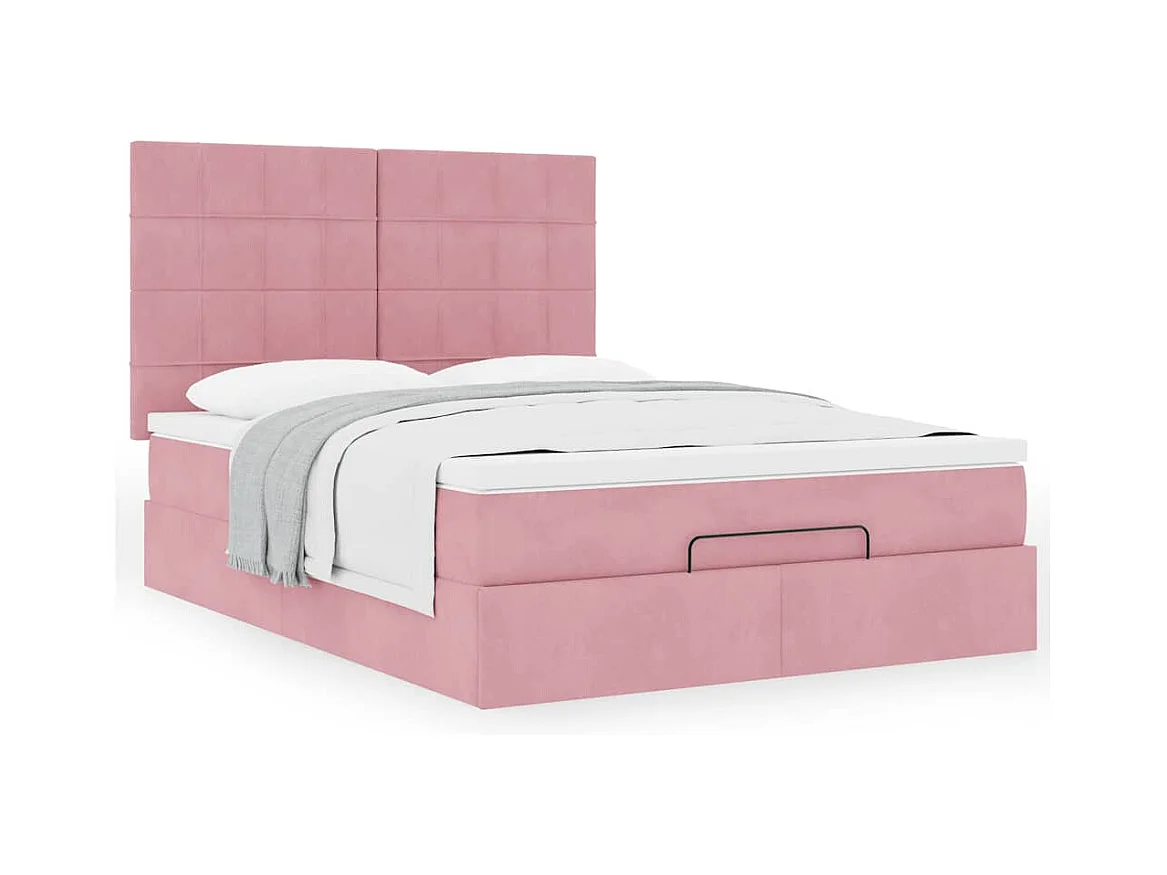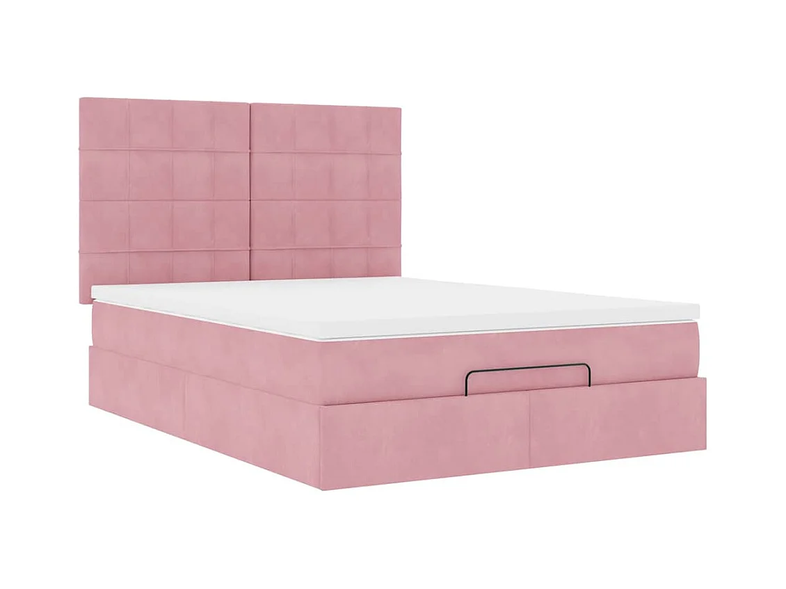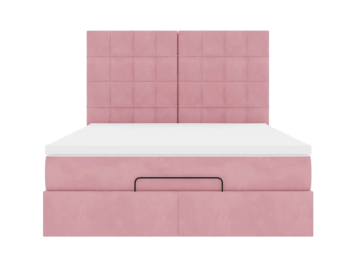 Struttura Letto Pouf con Materassi Rosa 140x200 cm in Velluto