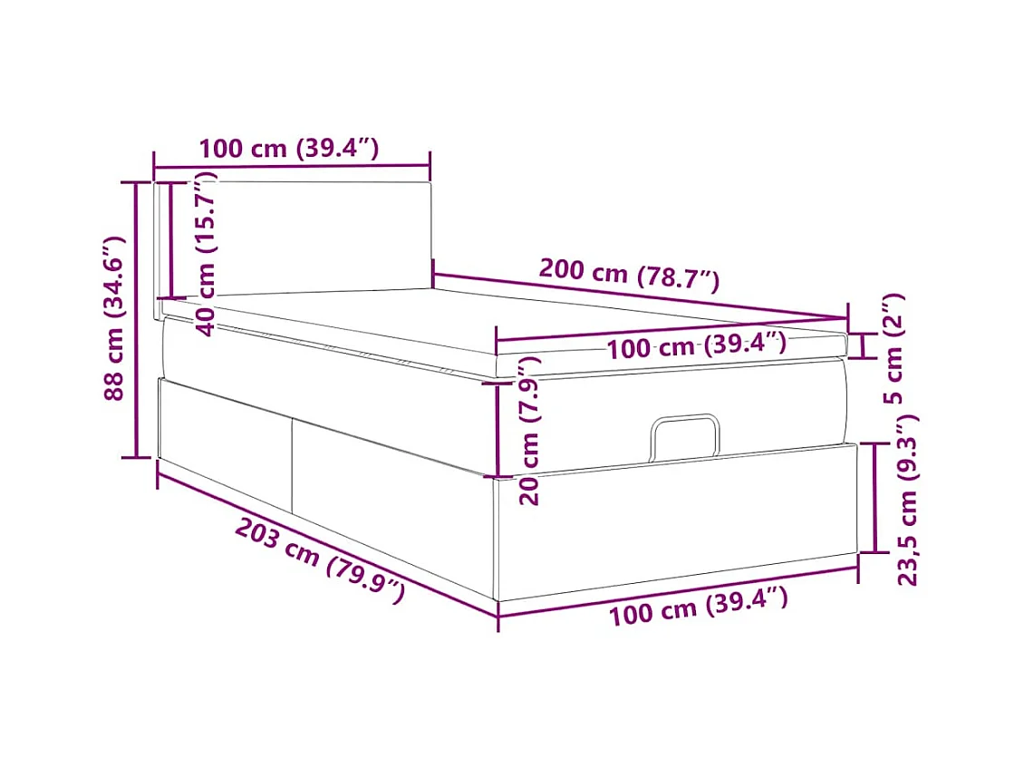 Struttura Letto Pouf con Materasso 100x200 cm Velluto