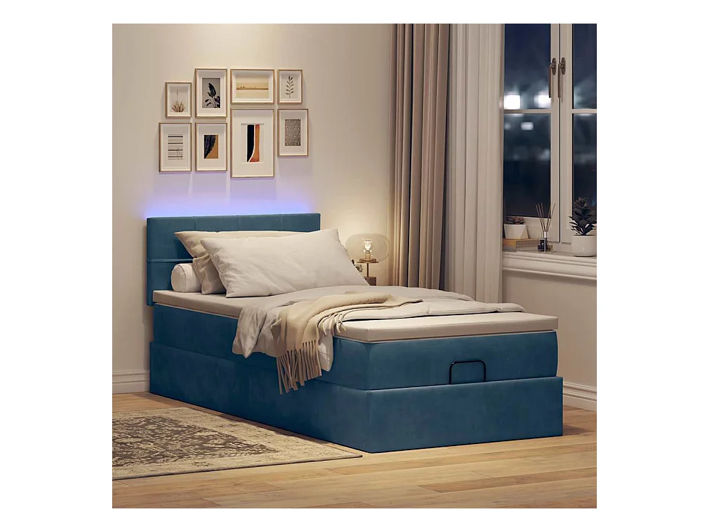 Giroletto con LED senza Materasso Hanko Blu 100x200 cm in Velluto