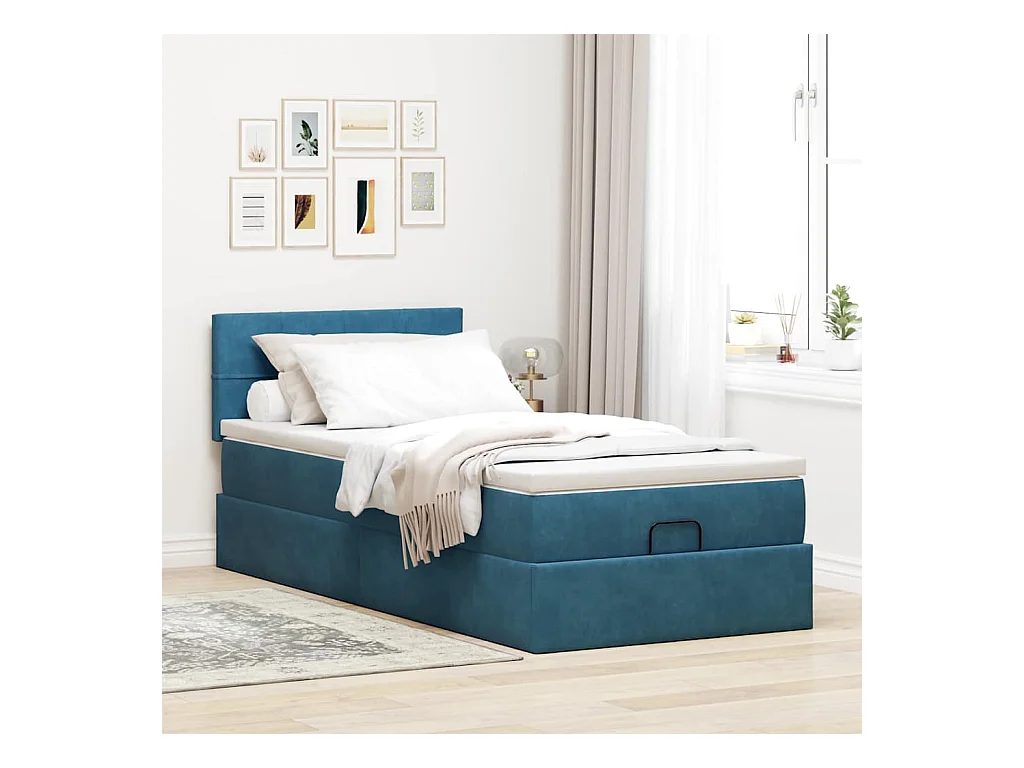 Letto a molle con materasso Blu 100 x 200 cm Tessuto
