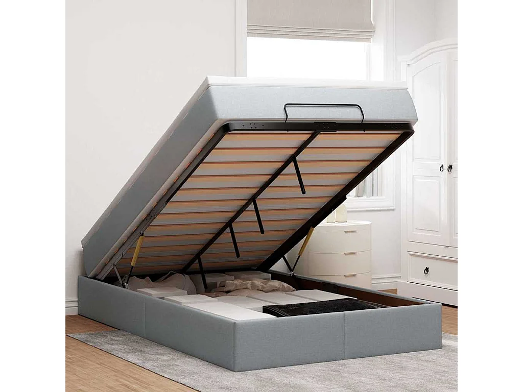 Pouf Letto con Materasso Grigio Chiaro 120x200 cm in Tessuto