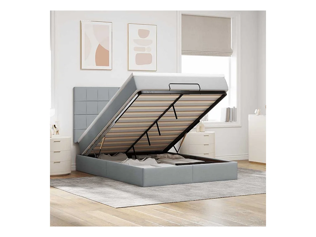 Struttura Letto Pouf con Materasso Tortora 140x200cm in Tessuto