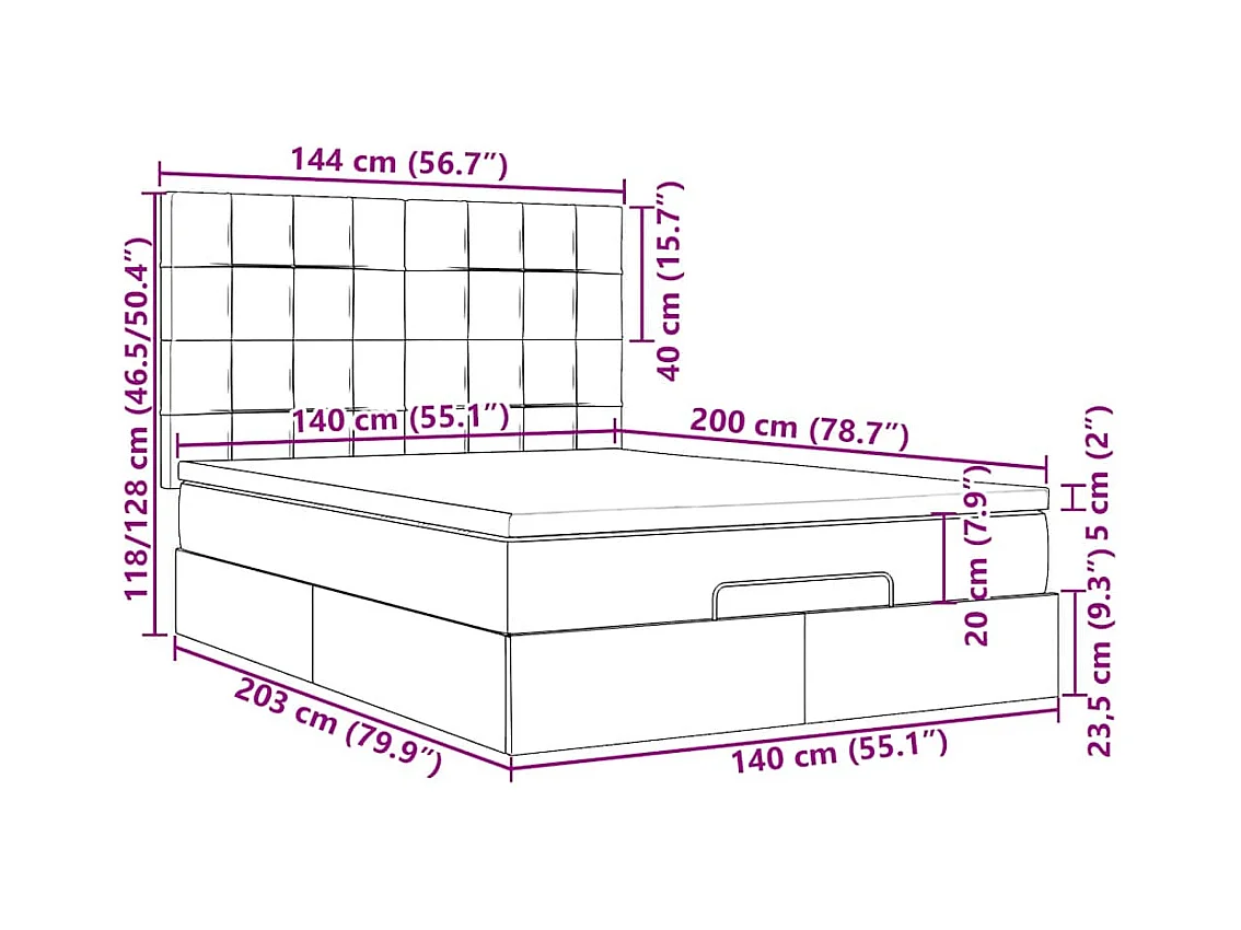 Struttura Letto Pouf con Materasso 140x200 cm in Tessuto