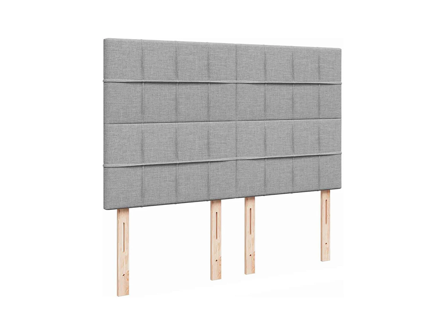 Letto matrimoniale imbottito con rete a doghe, testiera imbottita, lino grigio scuro, struttura in legno massello (141x209x101cm)