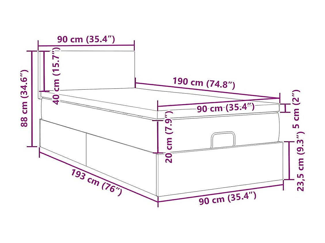 Struttura Letto Pouf con Materasso 90x190 cm in Velluto