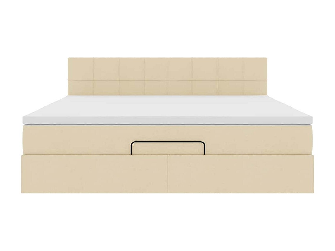 Struttura Letto Pouf con Materasso Crema 160x200 cm in Tessuto