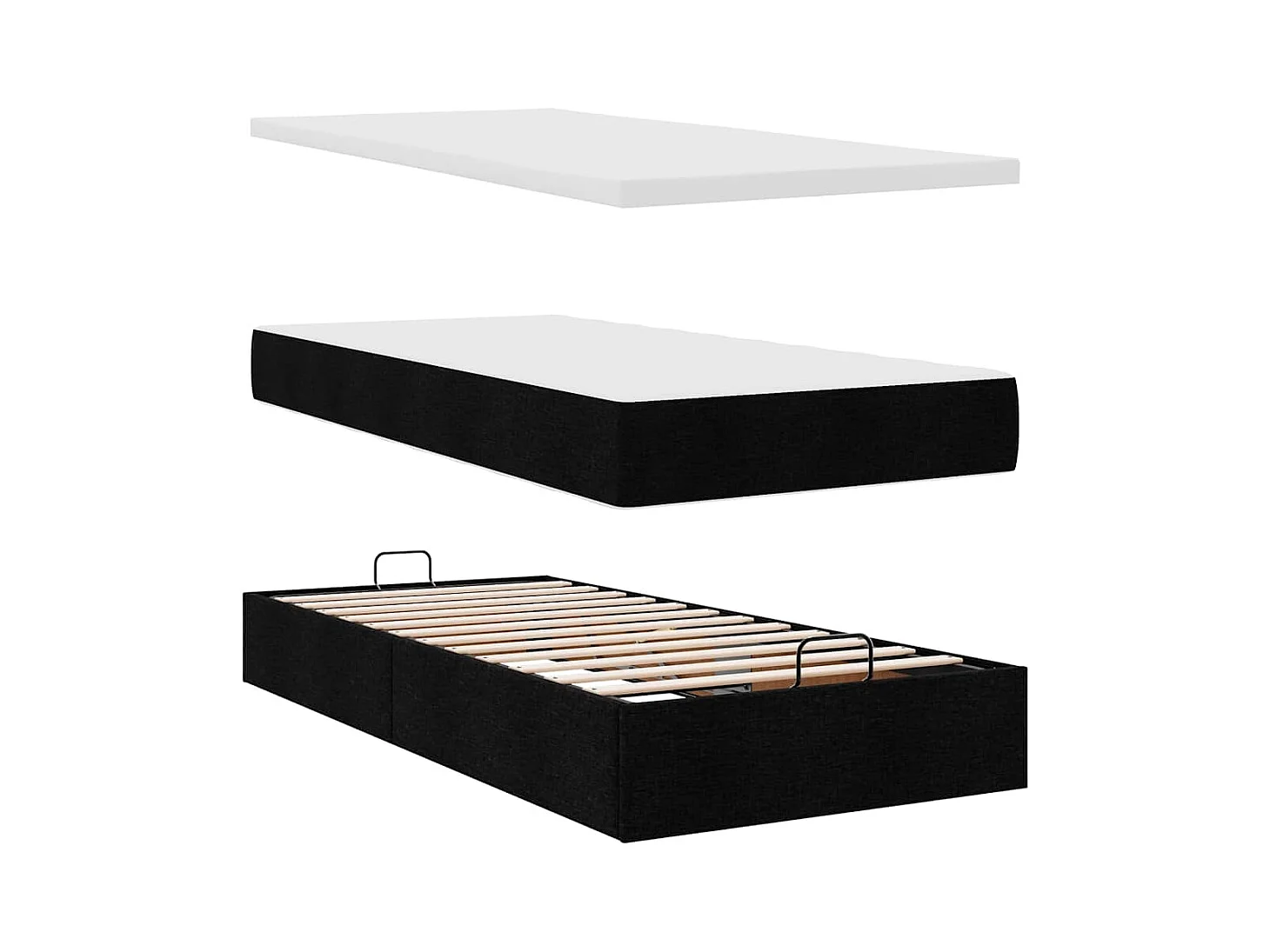 Struttura Letto Pouf con Materasso Nero 90x200 cm in Tessuto