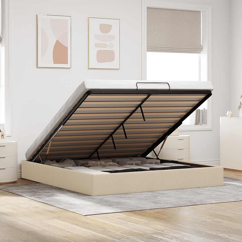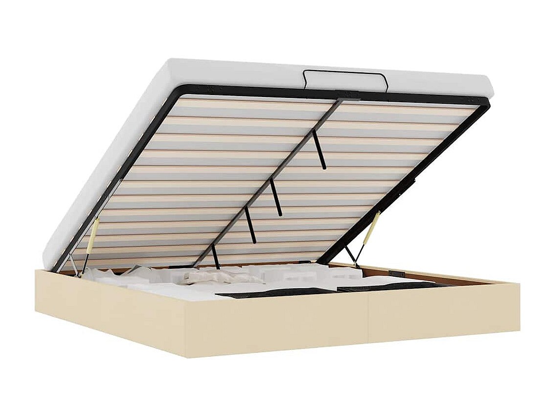 • Comodo meccanismo di sollevamento: Il meccanismo di sollevamento idraulico integrato consente un facile accesso agli effetti personali riposti sotto il letto. Con una semplice trazione della maniglia, la base a doghe si solleva dolcemente, permettendoti di recuperare i tuoi oggetti in modo rapido e senza sforzo.