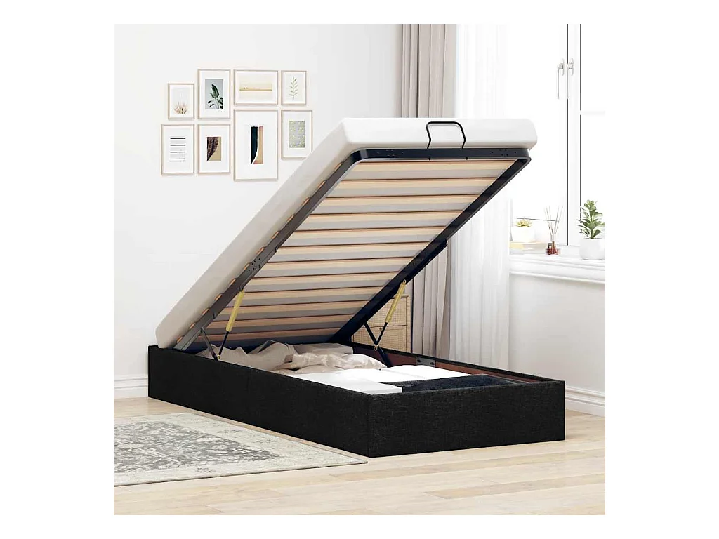 Struttura Letto Pouf senza Materasso Nero 100x200 cm in Tessuto
