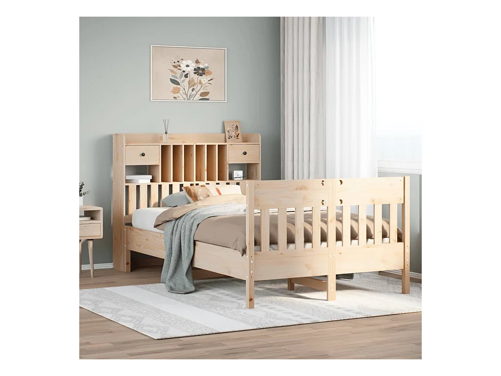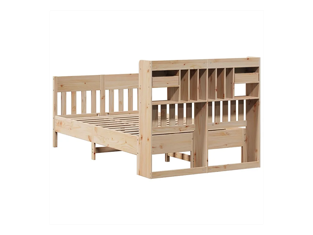 Letto libreria senza materasso 135x190 cm in legno massello di pino