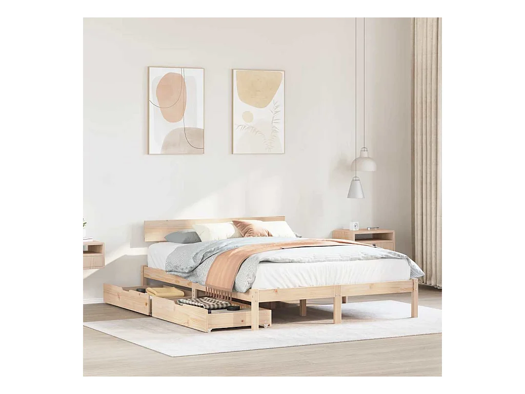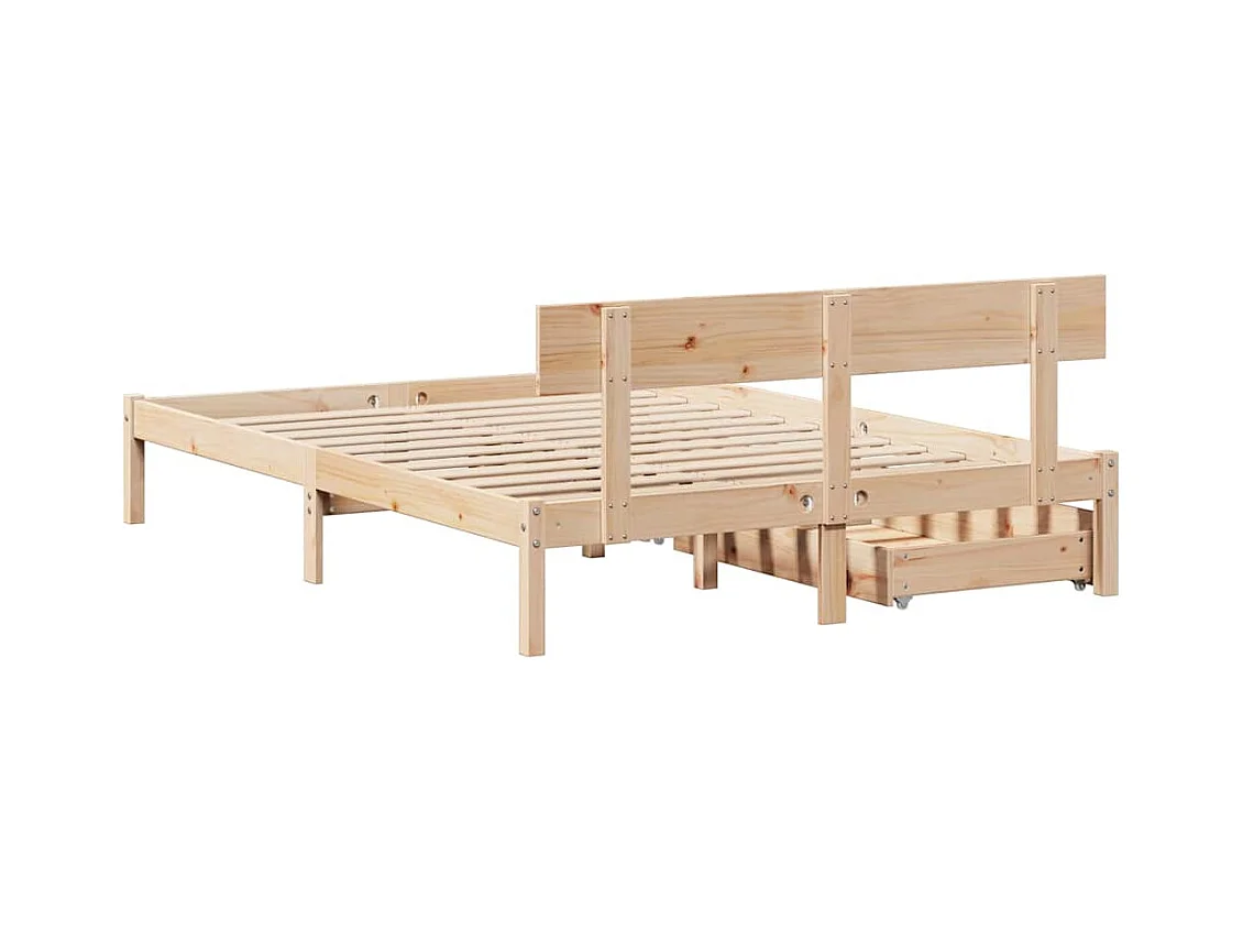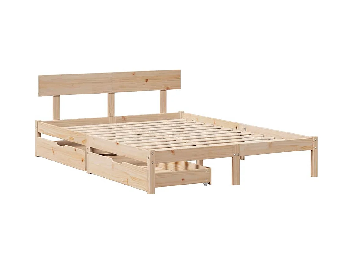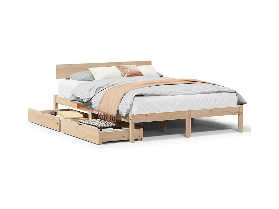 Struttura letto con cassetti 150x200 cm in legno massello di pino