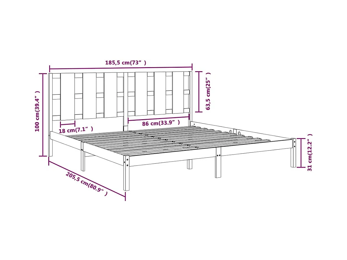 Struttura letto senza materasso bianco 180x200 cm in legno massello