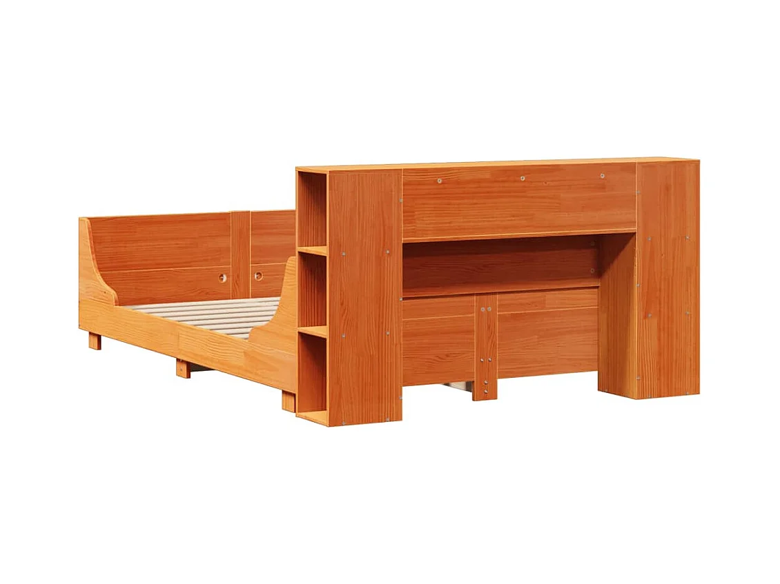 Letto libreria senza materasso, cera marrone, 140x200 cm, pino massiccio