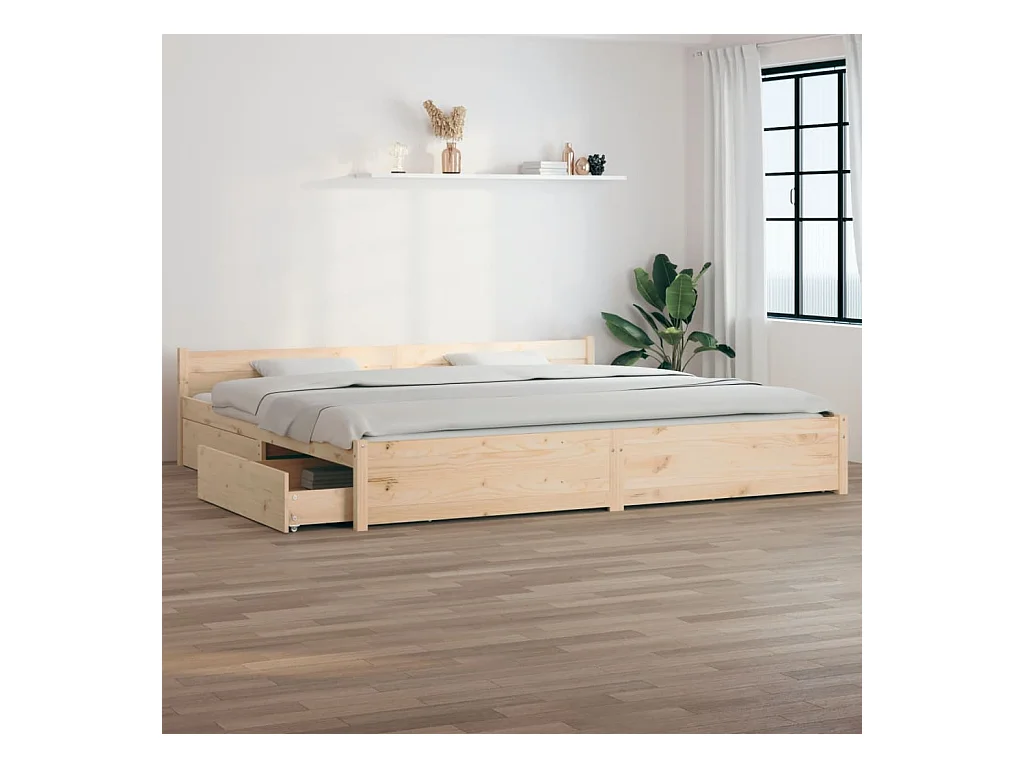 Struttura letto marrone 180 x 210 cm in legno massello di pino
